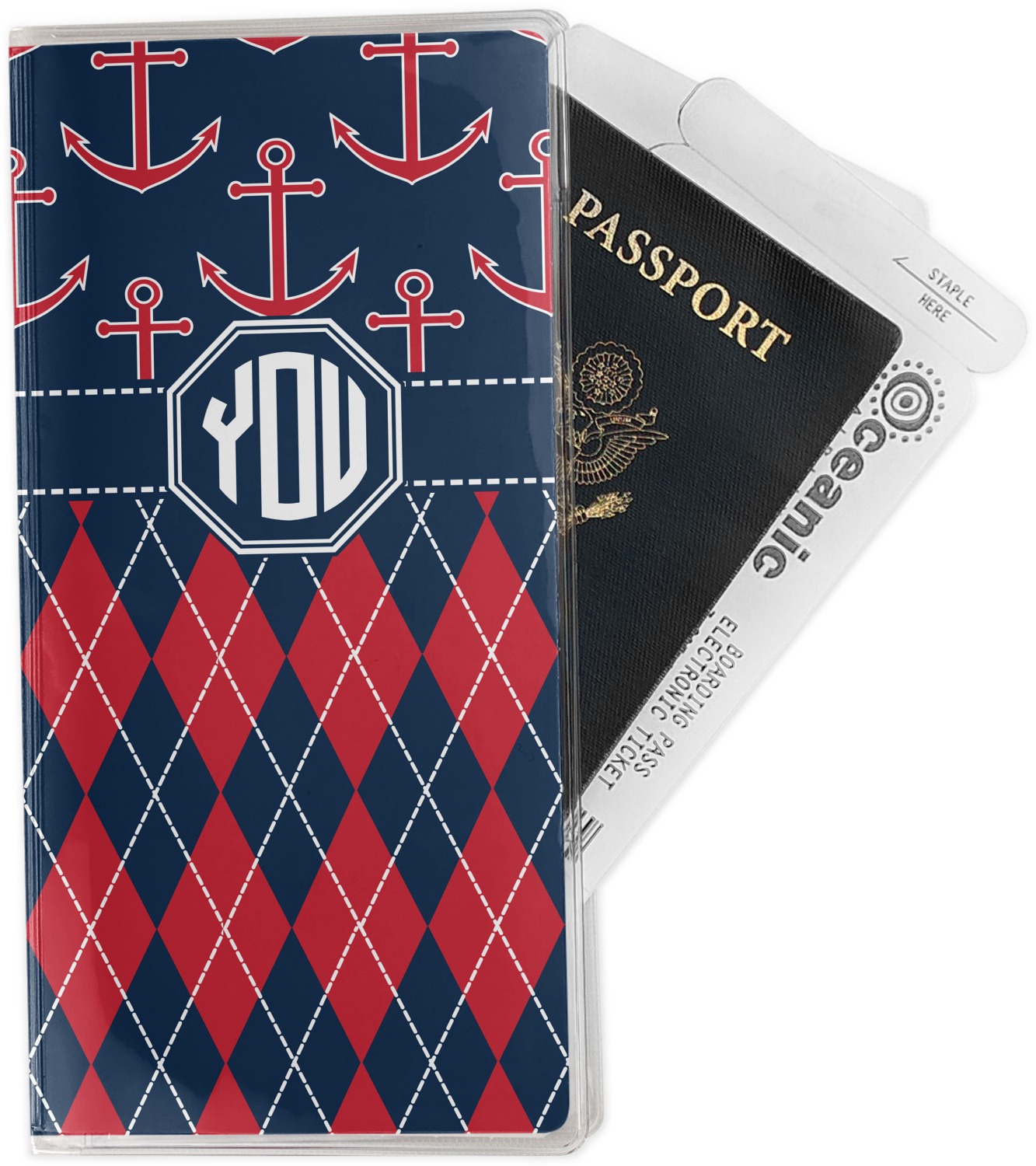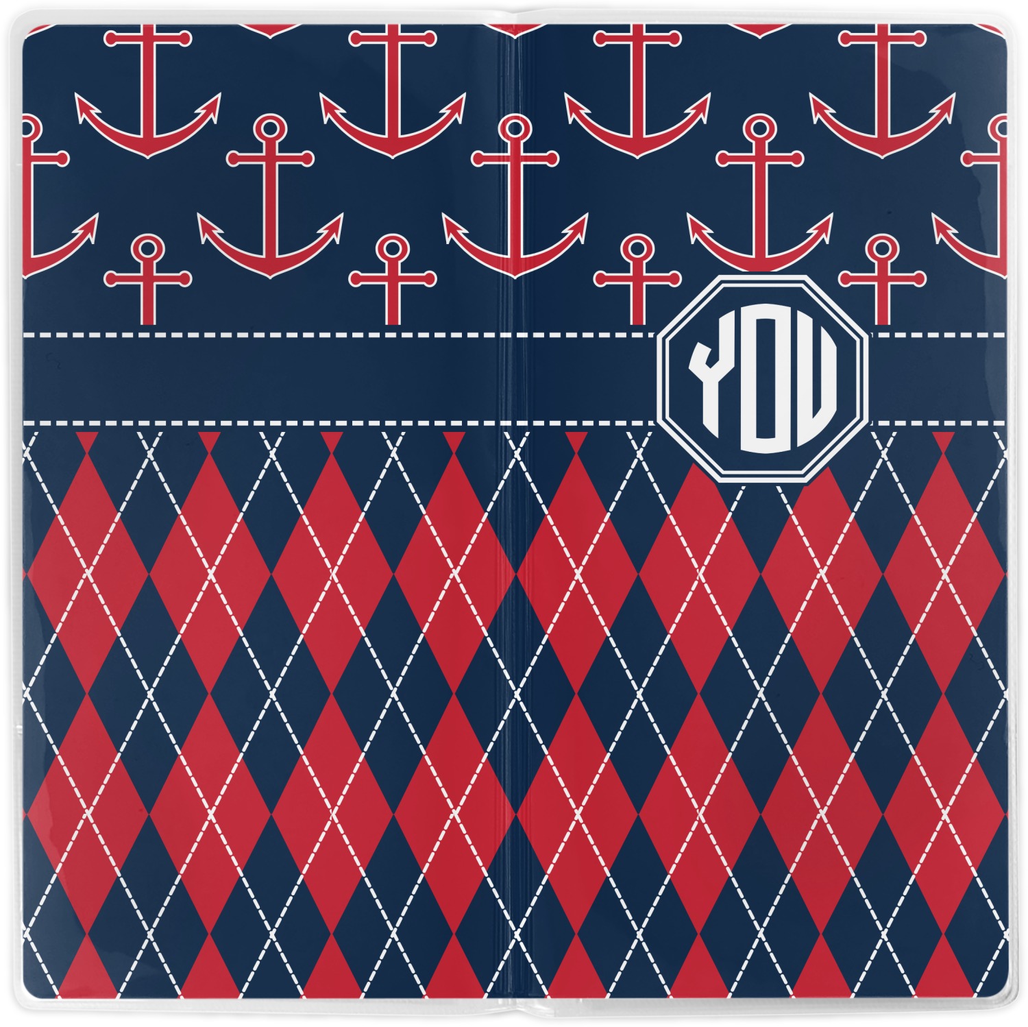 Come sail away with our Anchors & Argyle design. This design is a great balance of sea and land with nautical, red anchors on navy background and preppy red and navy argyle. Our design shown in bold navy and red, but the colors can be customized.