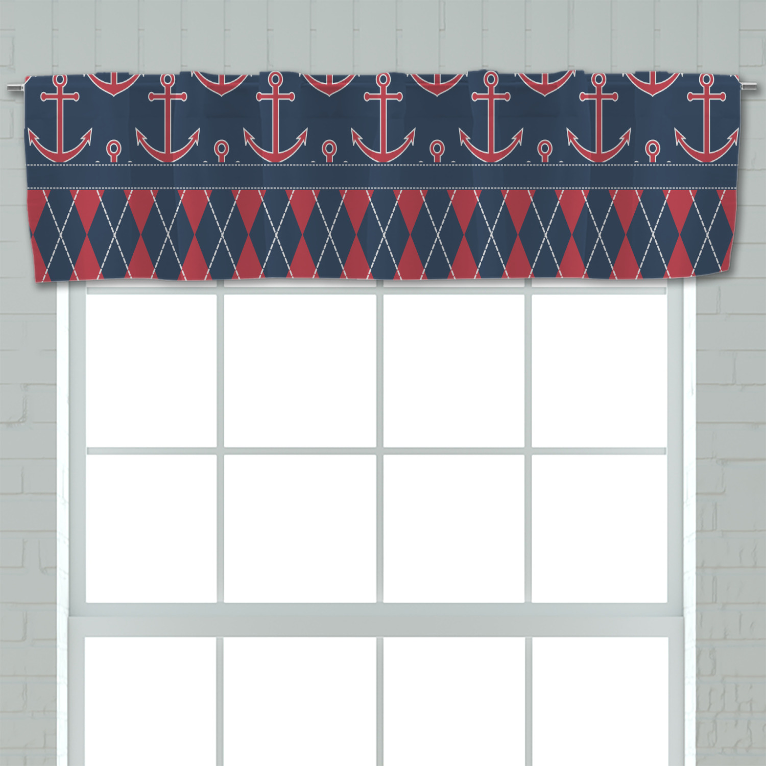 Come sail away with our Anchors & Argyle design. This design is a great balance of sea and land with nautical, red anchors on navy background and preppy red and navy argyle. Our design shown in bold navy and red, but the colors can be customized.