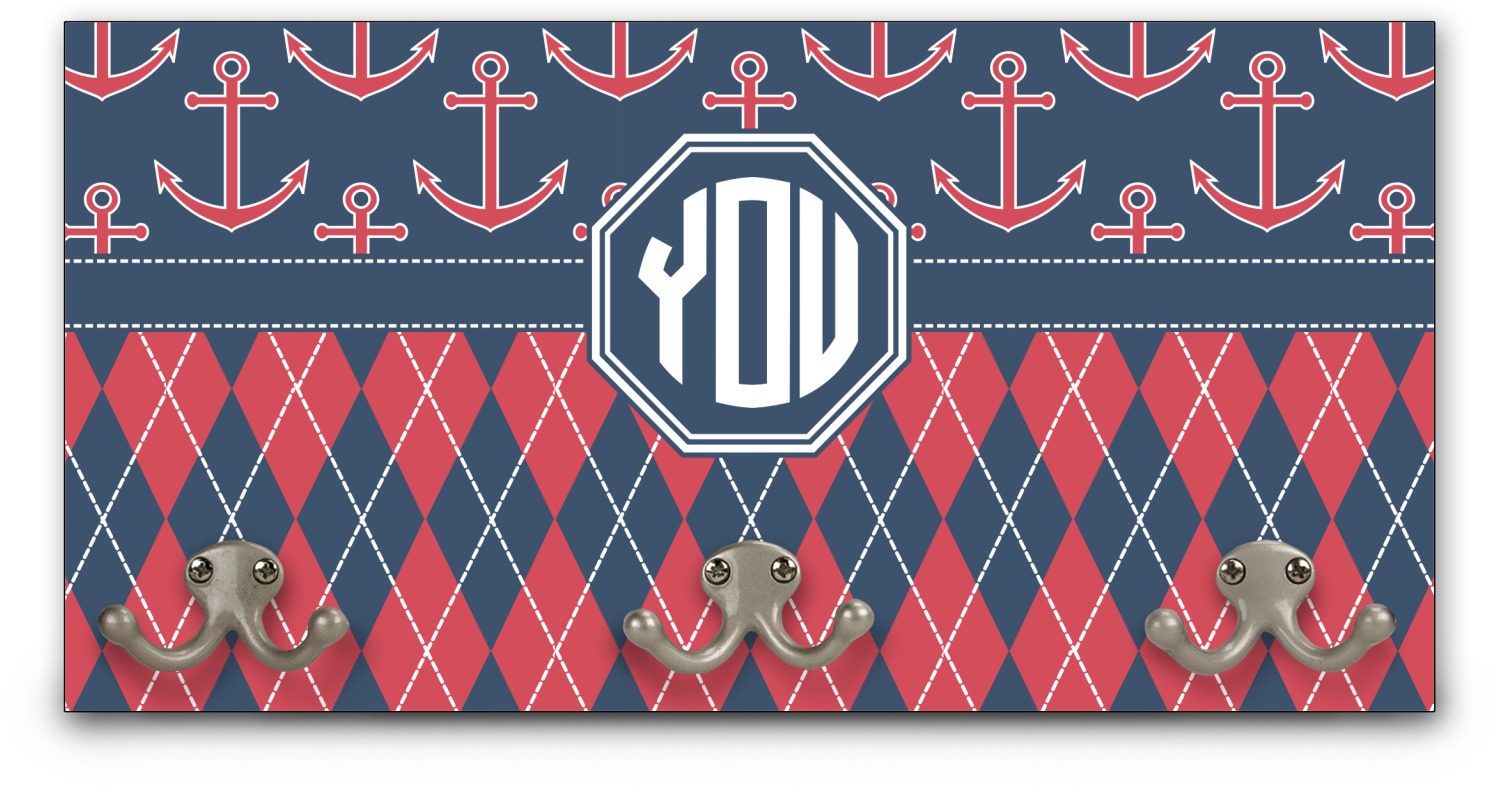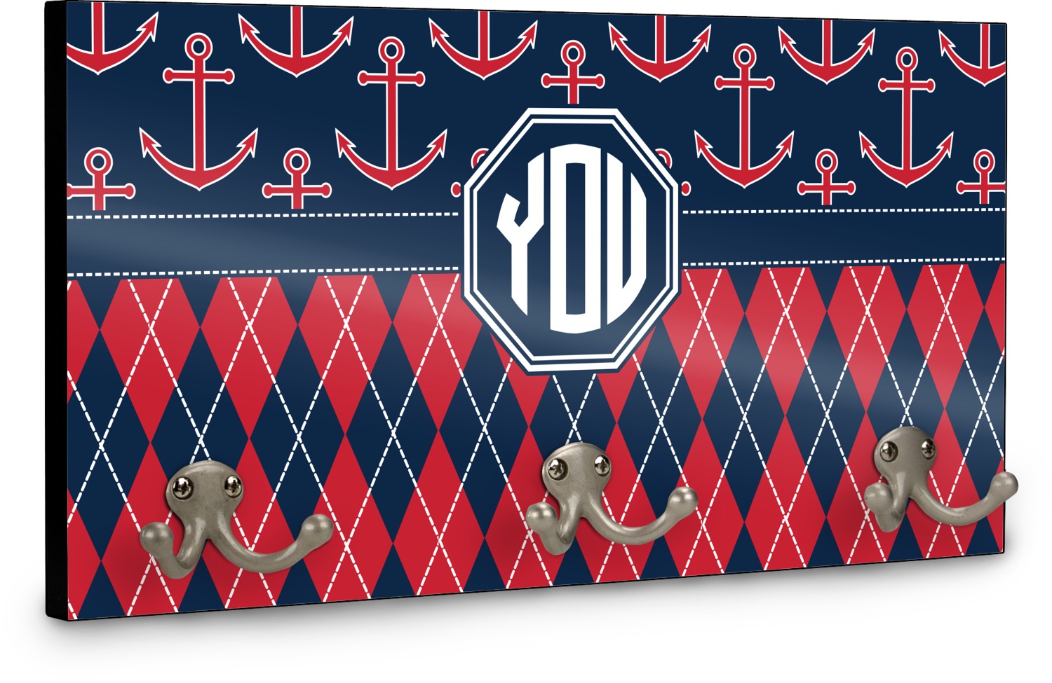Come sail away with our Anchors & Argyle design. This design is a great balance of sea and land with nautical, red anchors on navy background and preppy red and navy argyle. Our design shown in bold navy and red, but the colors can be customized.