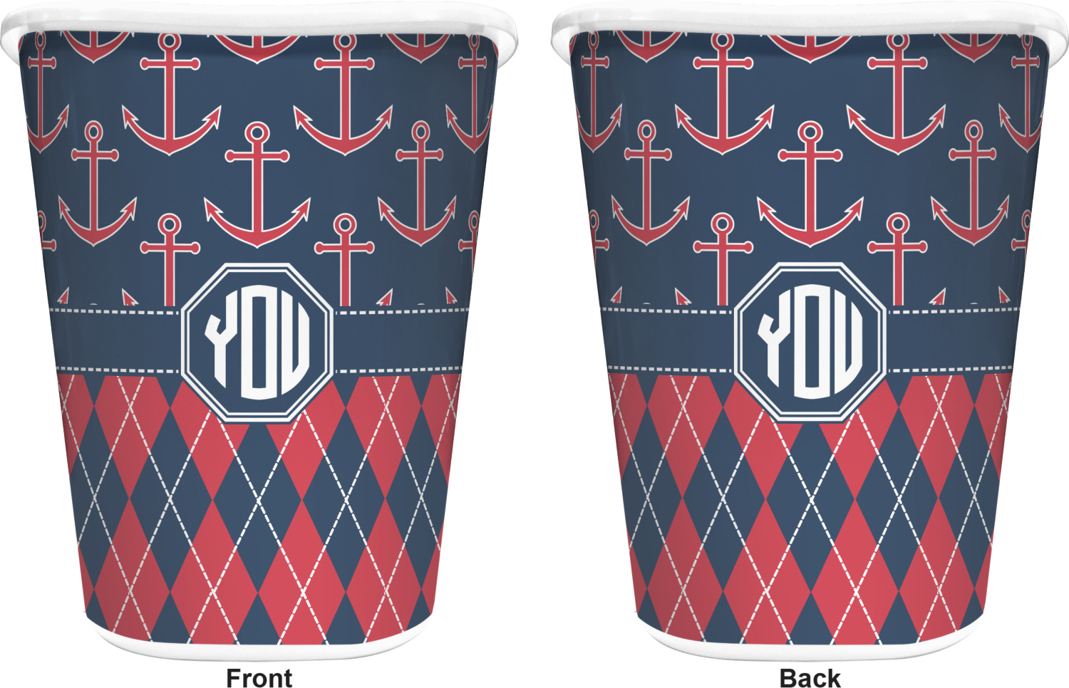 Come sail away with our Anchors & Argyle design. This design is a great balance of sea and land with nautical, red anchors on navy background and preppy red and navy argyle. Our design shown in bold navy and red, but the colors can be customized.