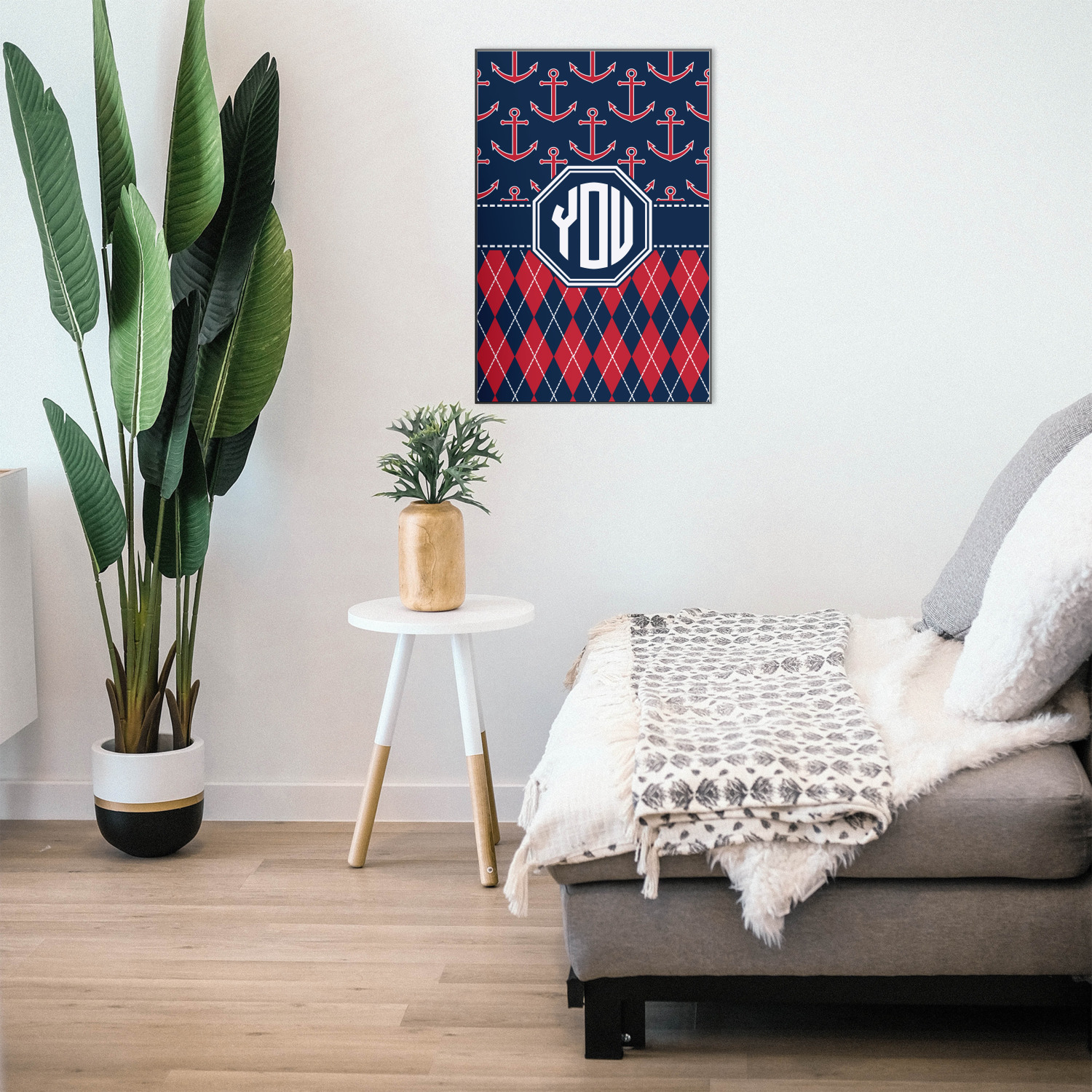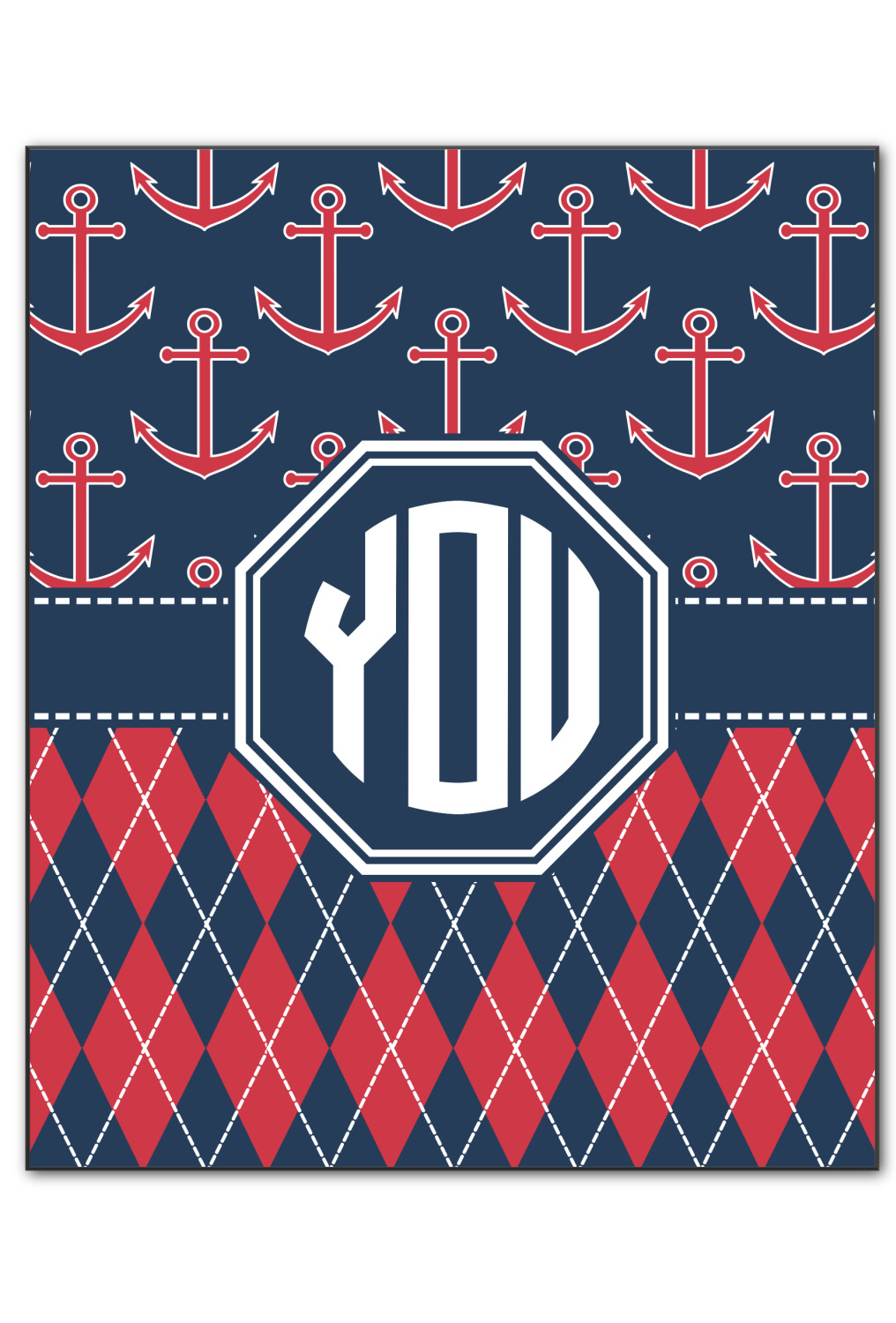 Come sail away with our Anchors & Argyle design. This design is a great balance of sea and land with nautical, red anchors on navy background and preppy red and navy argyle. Our design shown in bold navy and red, but the colors can be customized.