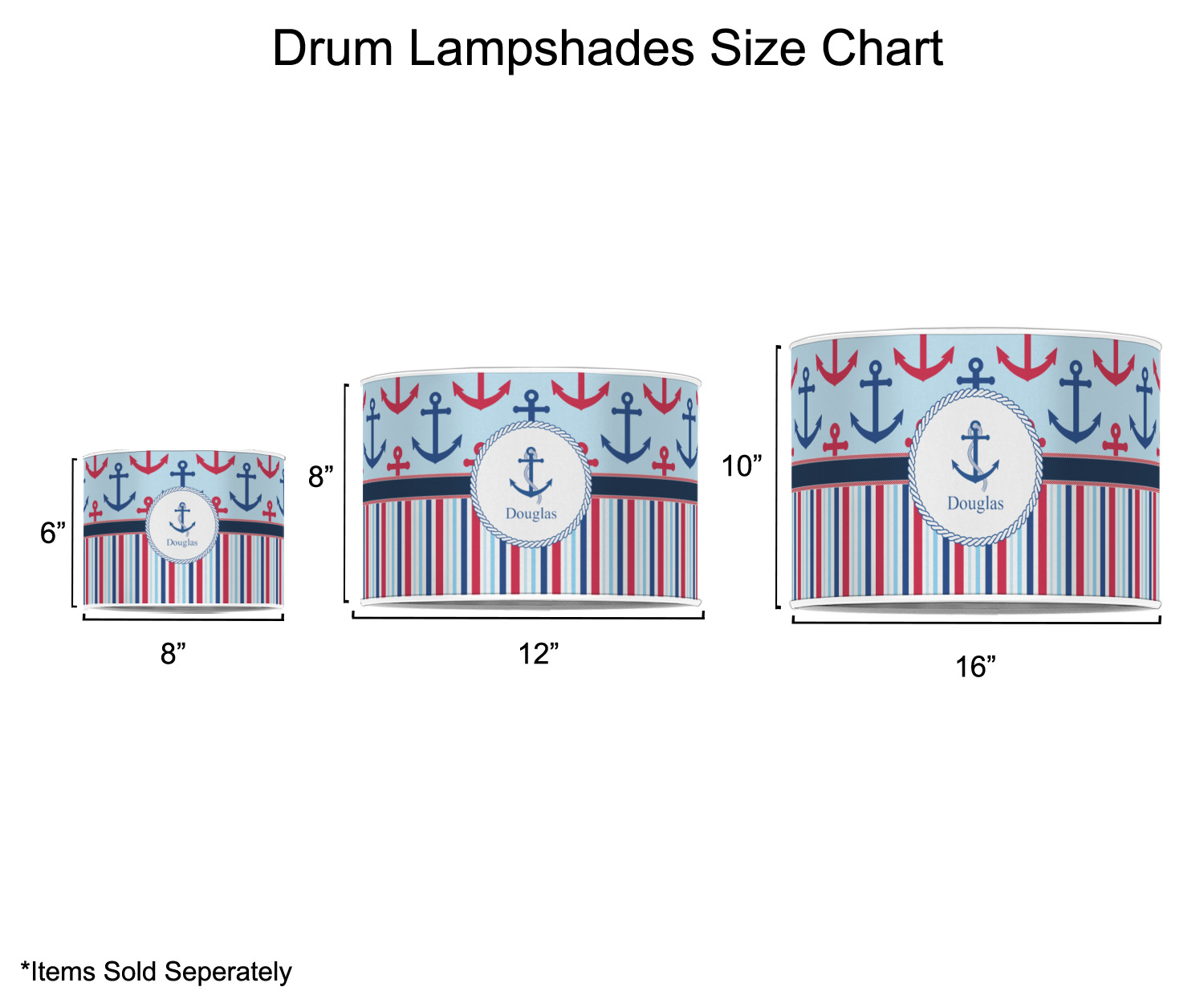 Our customized lamp shades also come in 3 different sizes: 8", 12" and 16", measuring at 8" in diameter by 6" tall, 12" in diameter by 8" tall, and 16" in diameter by 10" tall, respectively.