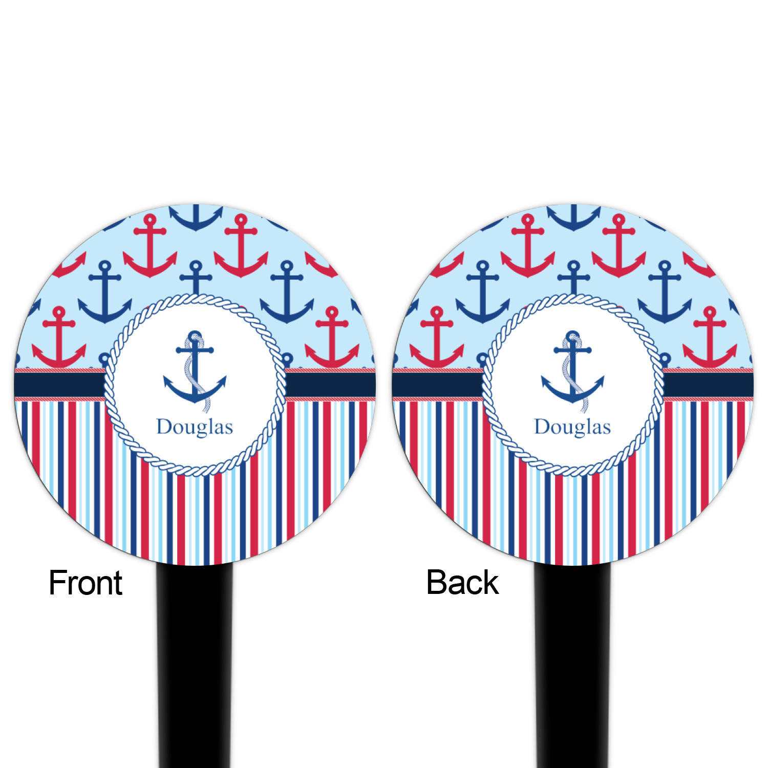 Coastal / Beach Style Designs for 4" Round Plastic Food Picks - Black - Double-Sided