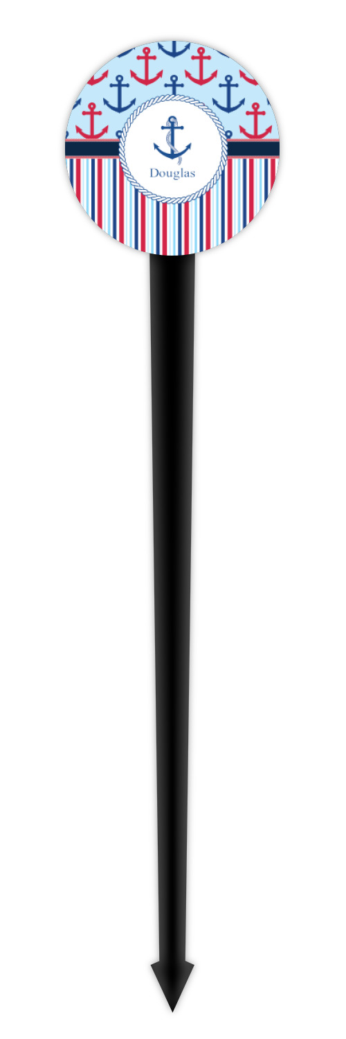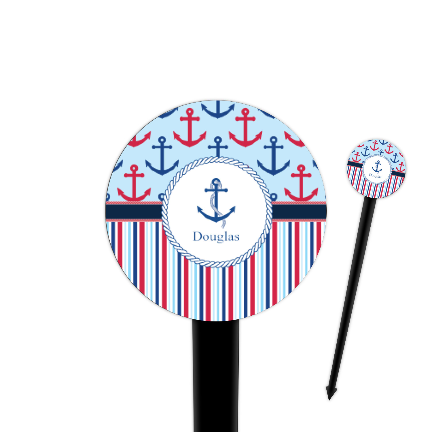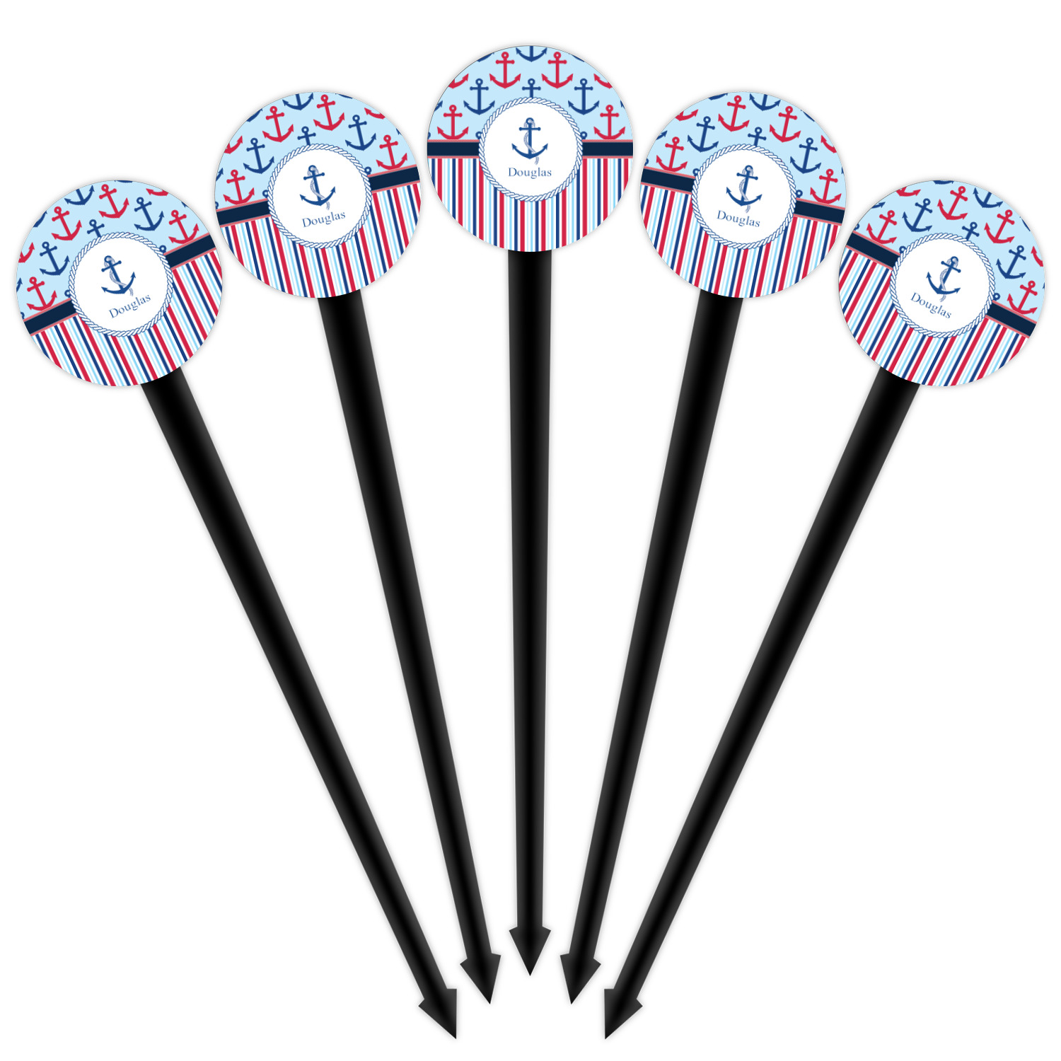 Coastal / Beach Style Designs for 4" Round Plastic Food Picks - Black - Single-Sided