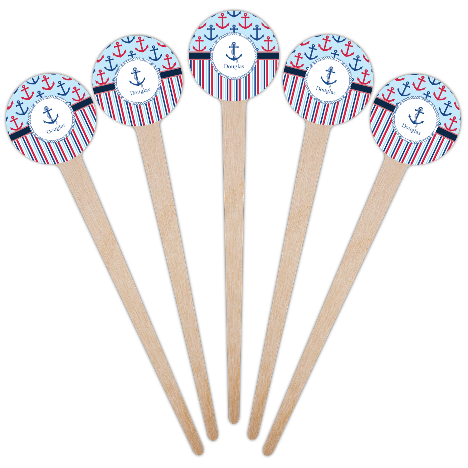 Coastal / Beach Style Designs for 4" Round Wooden Food Picks - Single-Sided