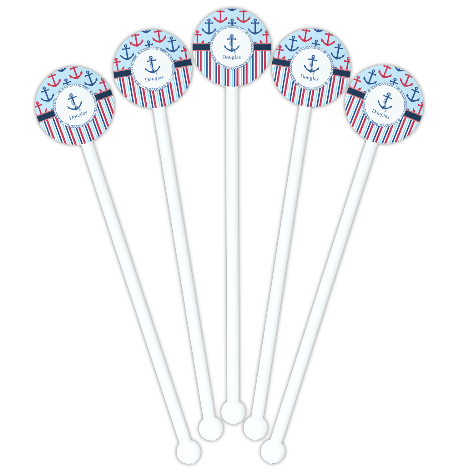 Coastal / Beach Style Designs for 5.5" Round Plastic Stir Sticks - White - Single-Sided