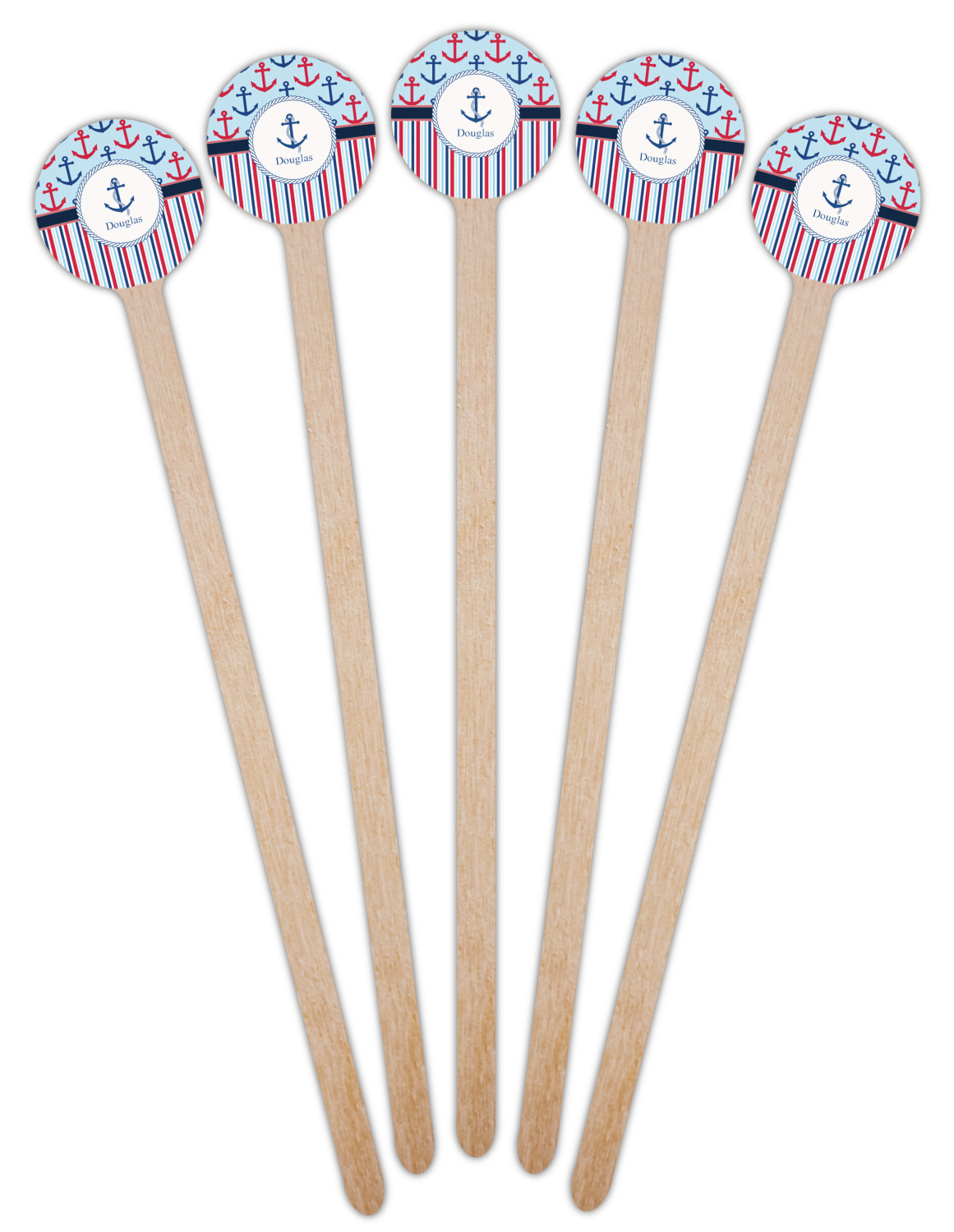 Coastal / Beach Style Designs for 7.5" Round Wooden Stir Sticks - Single-Sided