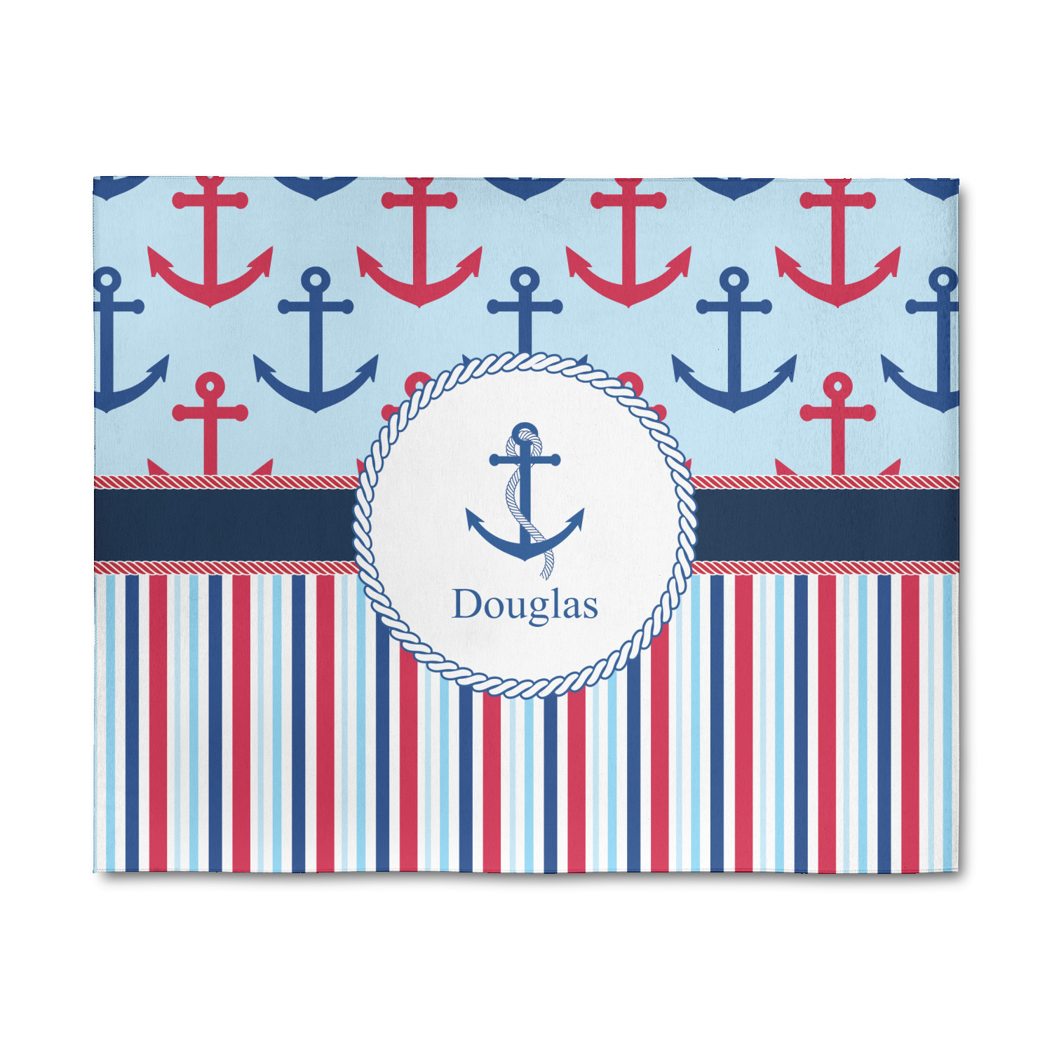 A porthole circle showcases an anchor and rope in the coordinating colors. Add your child's name for that personalized designer's touch.