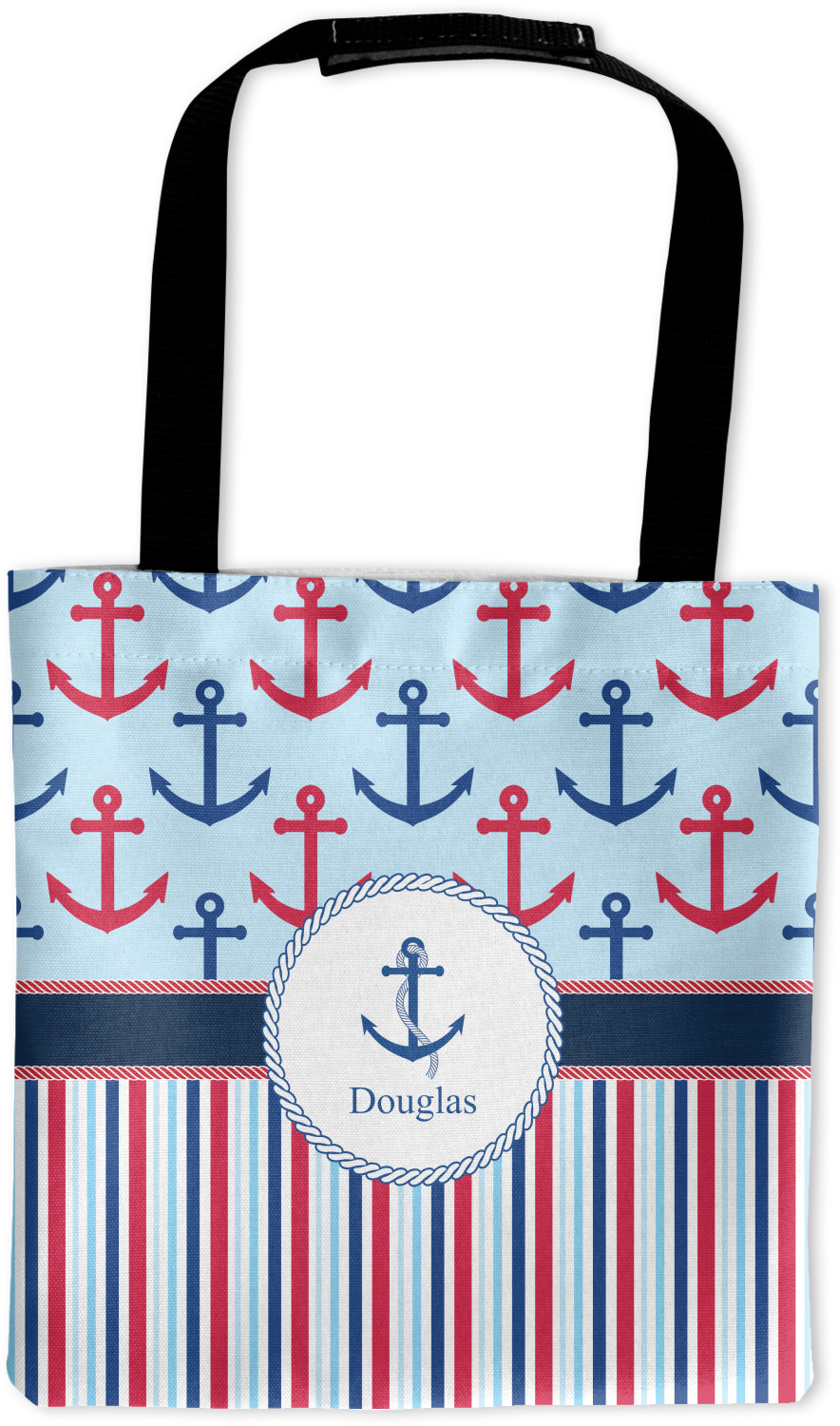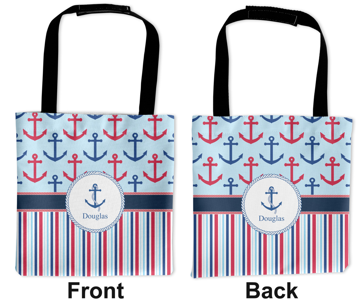 This look is just simply adorable. In red, white, and blue, the anchor design is nautical, fun, and yet still traditional. The bottom of the design uses the coordinating colors in a multi-striped pattern for that classic element in the pattern.