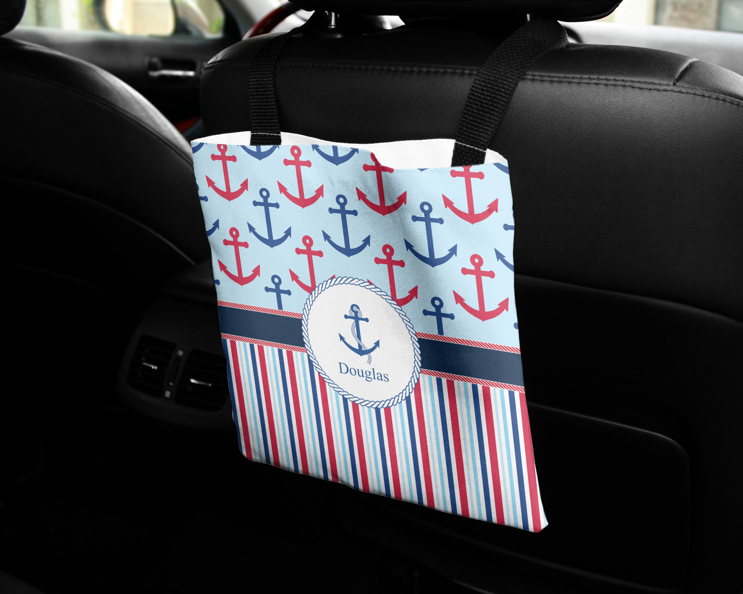 These car back seat organizers are sturdy tote-like bags, fabricated from a robust polyester, and features a single handle on the back side. The strap features an attachable velcro for easy attachment to headrests, grocery carts, car seats, and more. Simply undo the velcro, loop the strap around the headrest, reattach the velcro, and let the organizer hang from the front seat. These car organizers are the perfect means of increasing your backseat's legroom, while storing multiple items in one place for better accessibility. Each car back seat organizer measures at 10 by 10 inches, and features your personalized design printed across its front and back.