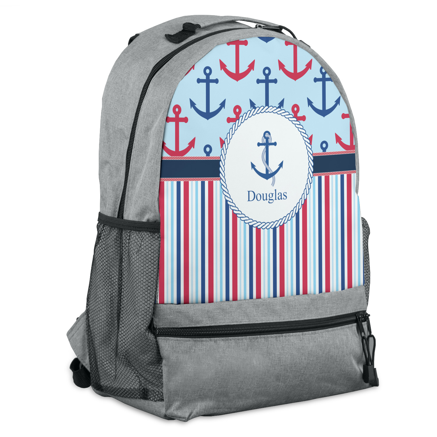 A porthole circle showcases an anchor and rope in the coordinating colors. Add your child's name for that personalized designer's touch.