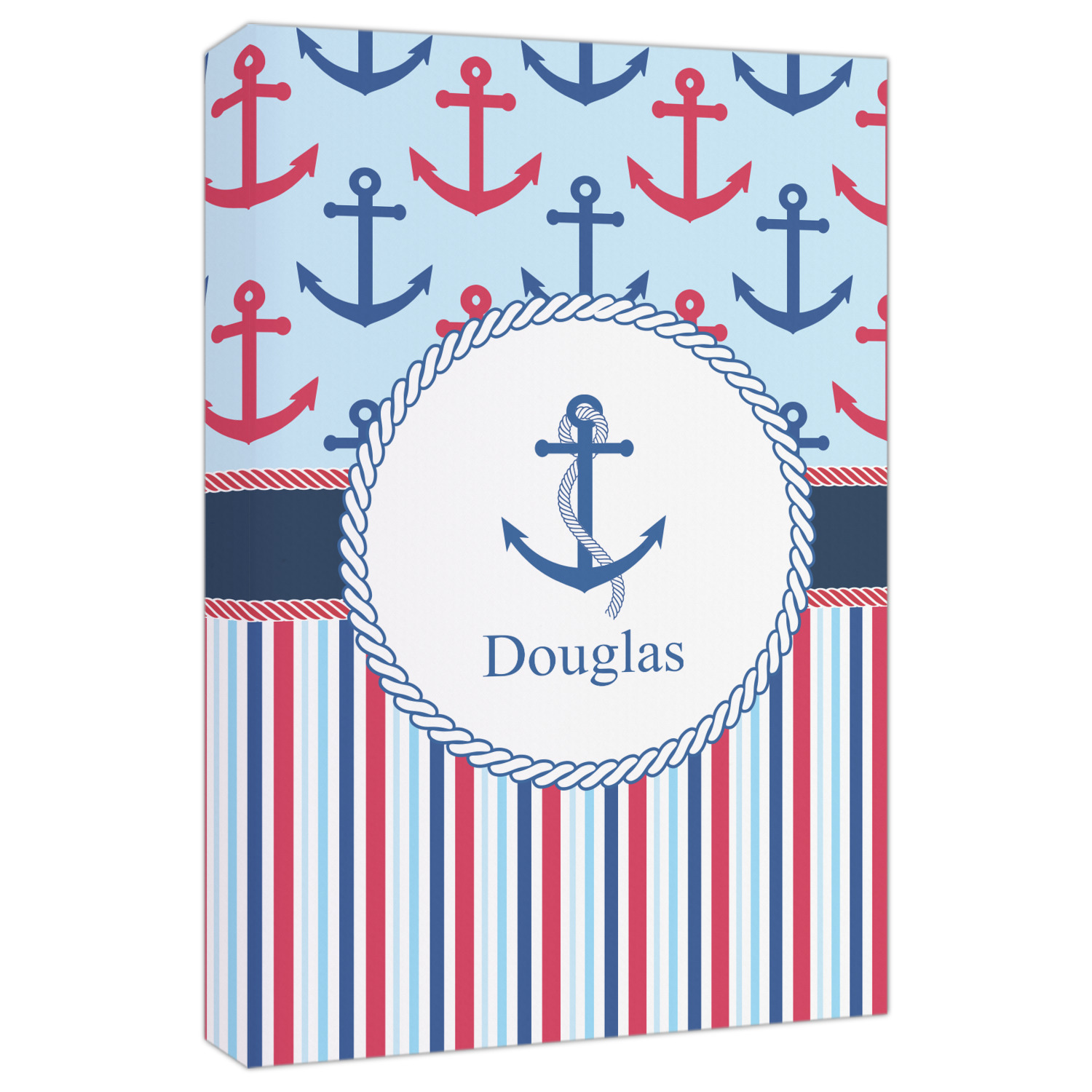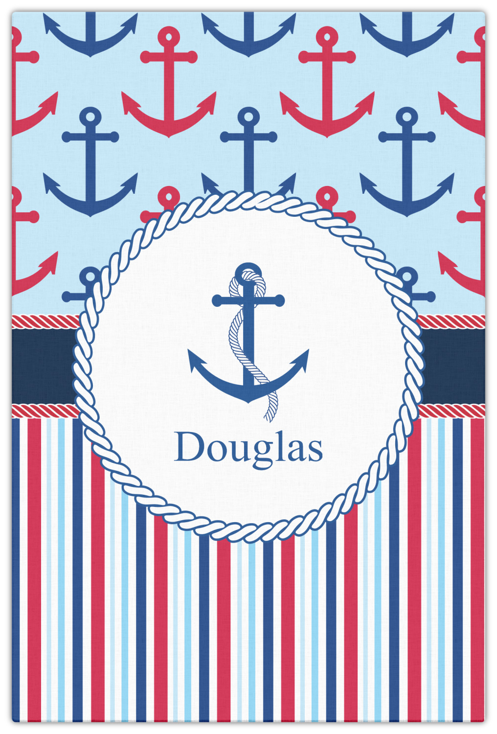 A porthole circle showcases an anchor and rope in the coordinating colors. Add your child's name for that personalized designer's touch.