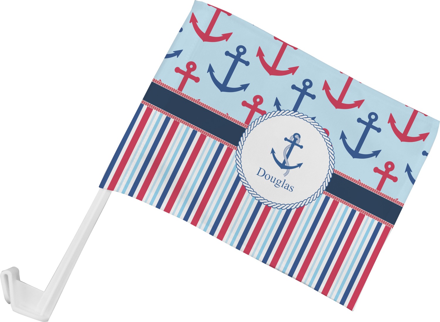Our personalized flags are made from a durable, yet lightweight cloth that will proudly bear your logo or design of choice, while withstanding the outside elements. We have two size options - 8" x 11" and 11" x 15". Both come with a flag pole which includes a clip that secures the pole to the side window, whether it is rolled up or down. The flags are printed on both sides to display your design from all directions.