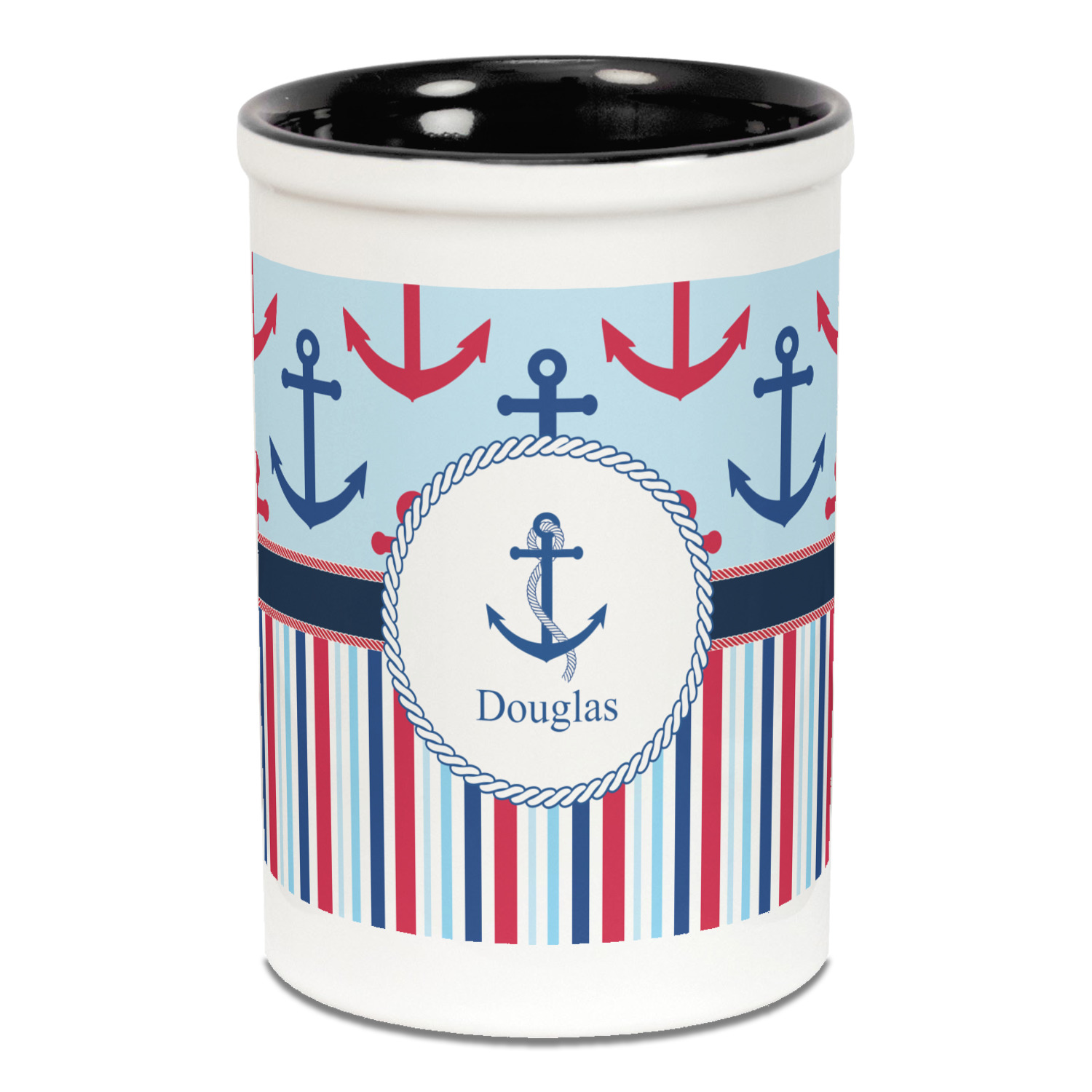A porthole circle showcases an anchor and rope in the coordinating colors. Add your child's name for that personalized designer's touch.