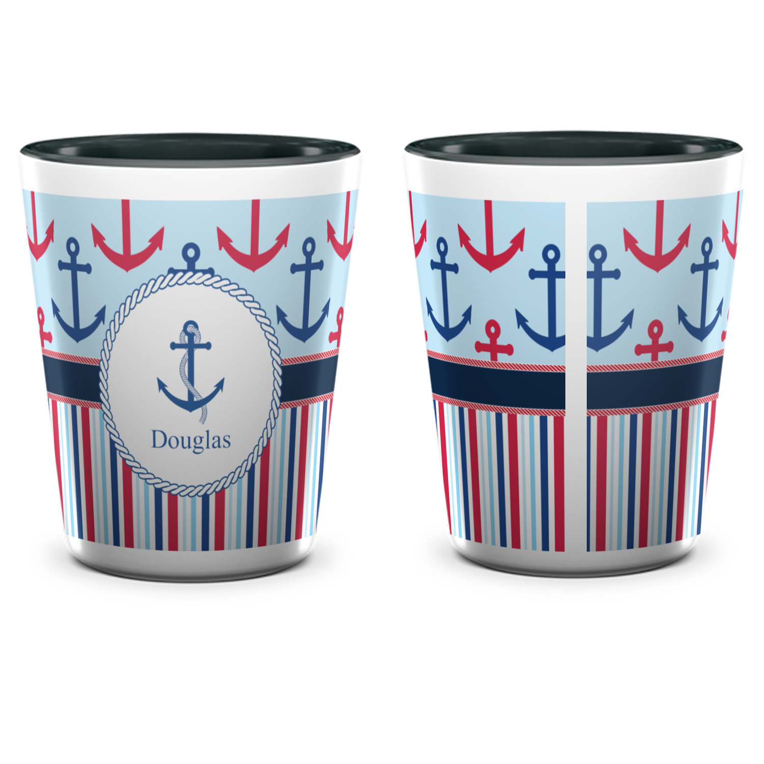 Made from ceramic these shot glasses are printed in full color with the design of your choice. These are a standard 1.5oz size and stand 2.25" tall. Available in a full white ceramic or a two-tone with a black color inside the shot glass. Buy a single or a set of 4, all of which can be designed separately to get you just what you want and need.