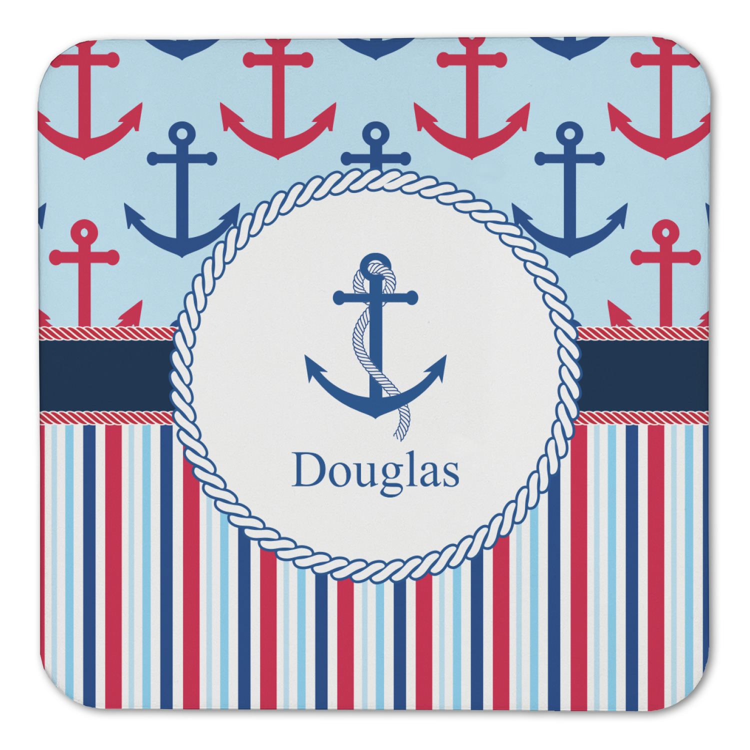 A porthole circle showcases an anchor and rope in the coordinating colors. Add your child's name for that personalized designer's touch.