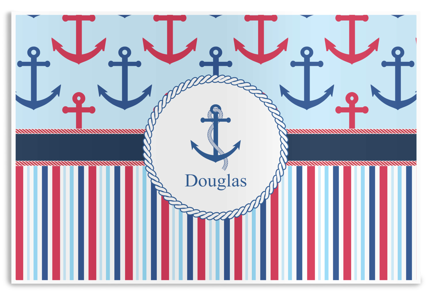 A porthole circle showcases an anchor and rope in the coordinating colors. Add your child's name for that personalized designer's touch.