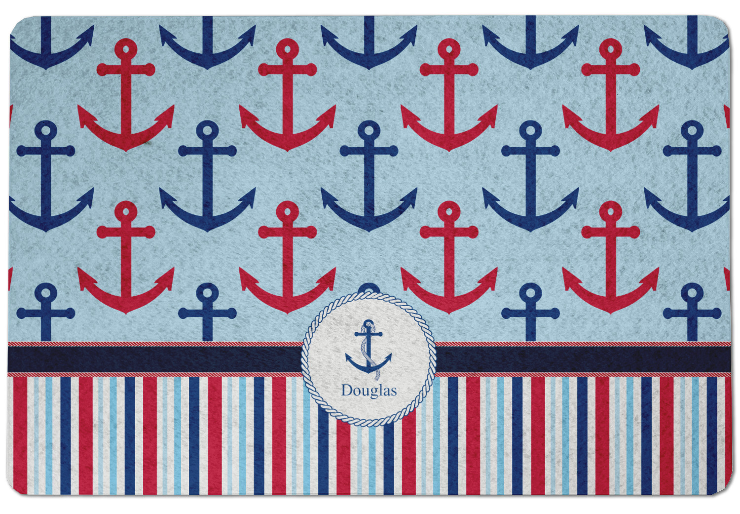 A porthole circle showcases an anchor and rope in the coordinating colors. Add your child's name for that personalized designer's touch.