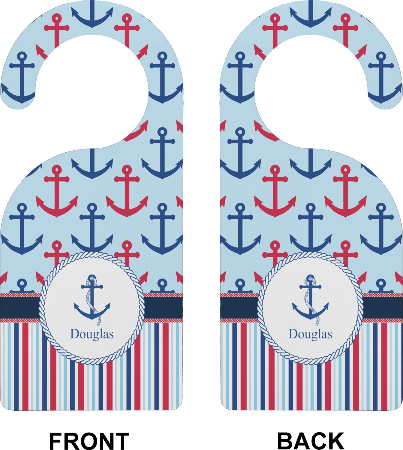 A porthole circle showcases an anchor and rope in the coordinating colors. Add your child's name for that personalized designer's touch.