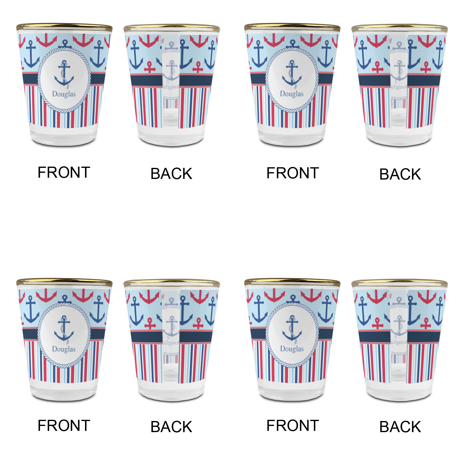 Coastal / Beach Style Designs for Glass Shot Glasses - 1.5 oz - with Gold Rim - Set of 4