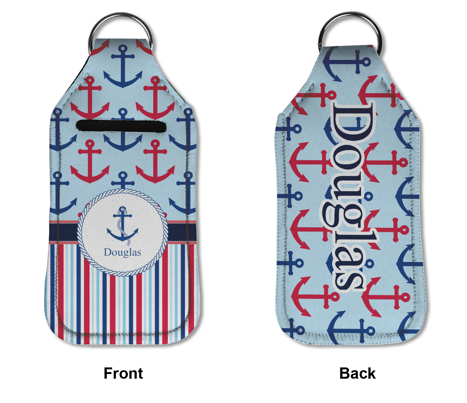 Each hand sanitizer holder comes with its own empty travel-sized, refillable hand sanitizer sure to fit snug in your customized sanitizer case! Our hand sanitizer cases are a durable, yet soft neoprene material sure to last any daily activities or travel agenda. Customize and personalize a hand sanitizer bottle holder with one of our two sizes - small (4.25" x 2.25") or large (5.5" x 2.5"). Each travel sanitizer holder comes with a keyring for attachment on bags, keys, or more!