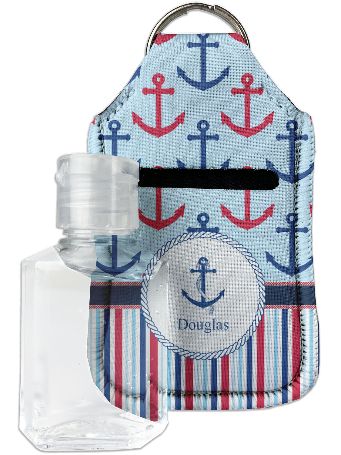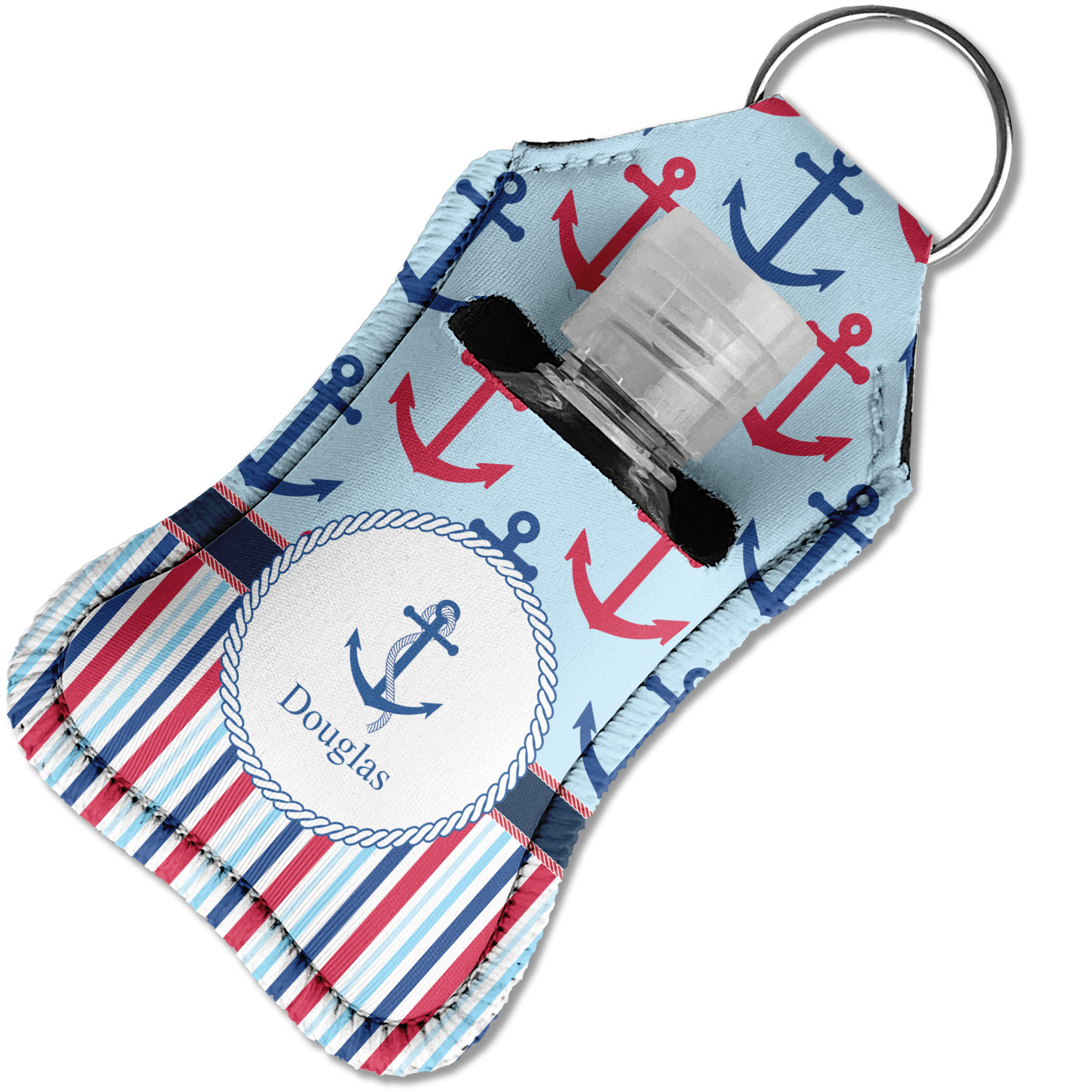 Each hand sanitizer holder comes with its own empty travel-sized, refillable hand sanitizer sure to fit snug in your customized sanitizer case! Our hand sanitizer cases are a durable, yet soft neoprene material sure to last any daily activities or travel agenda. Customize and personalize a hand sanitizer bottle holder with one of our two sizes - small (4.25" x 2.25") or large (5.5" x 2.5"). Each travel sanitizer holder comes with a keyring for attachment on bags, keys, or more!