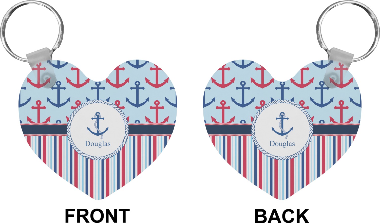 Our personalized keychains attach to the included metal, split key ring with a plastic, removable snap. Since a metal ring is included with your purchase, you have the liberty to keep your keys together on the ring, with or without your unique keychain. We offer this keychain in three different shapes: circle, heart, or diamond. We print your personalized design(s) on both sides of the key chain, and the surface has a glossy, reflective finish that only emphasizes your design. Each keychain is approximately 2.25 by 2.25 inches.