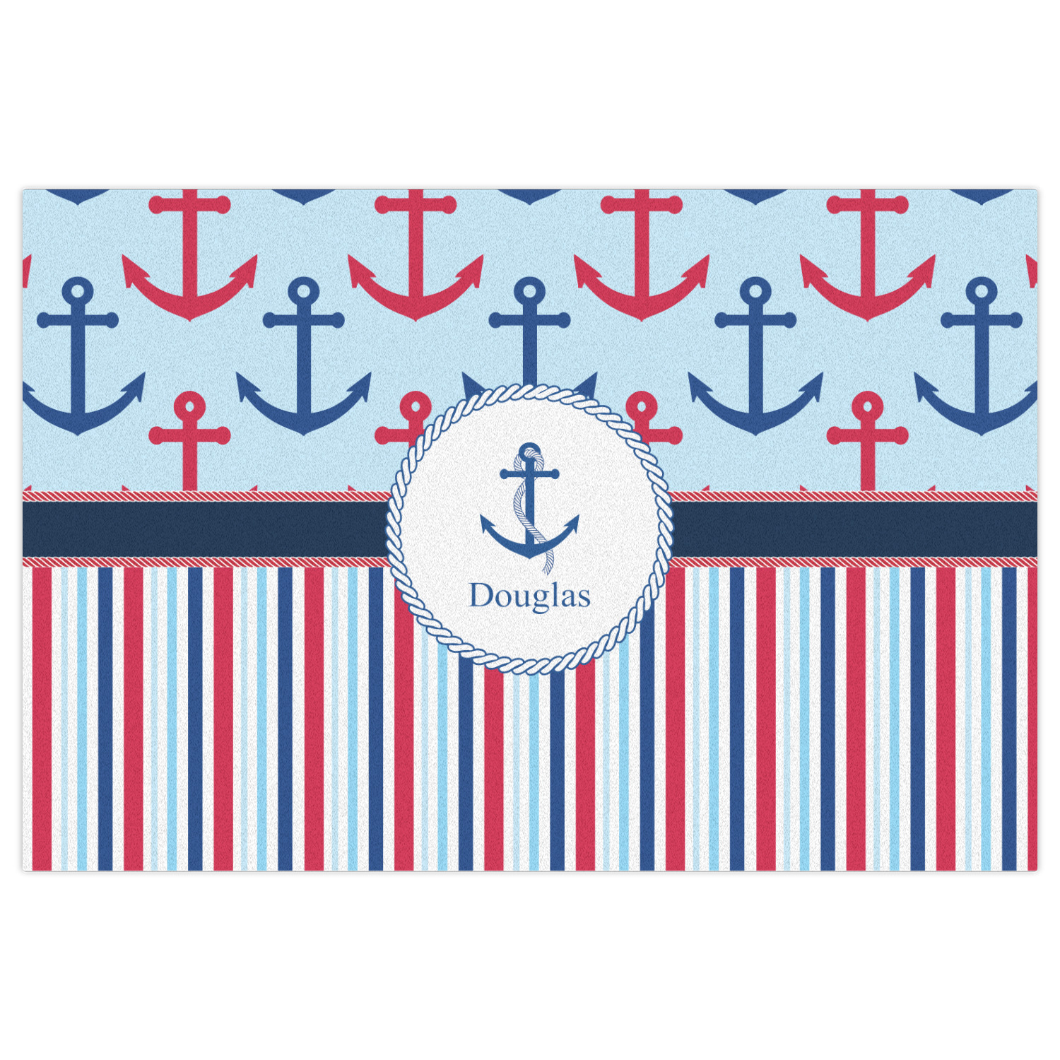 A porthole circle showcases an anchor and rope in the coordinating colors. Add your child's name for that personalized designer's touch.