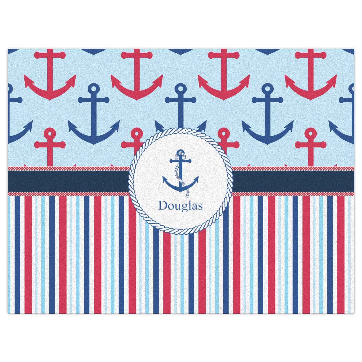 A porthole circle showcases an anchor and rope in the coordinating colors. Add your child's name for that personalized designer's touch.
