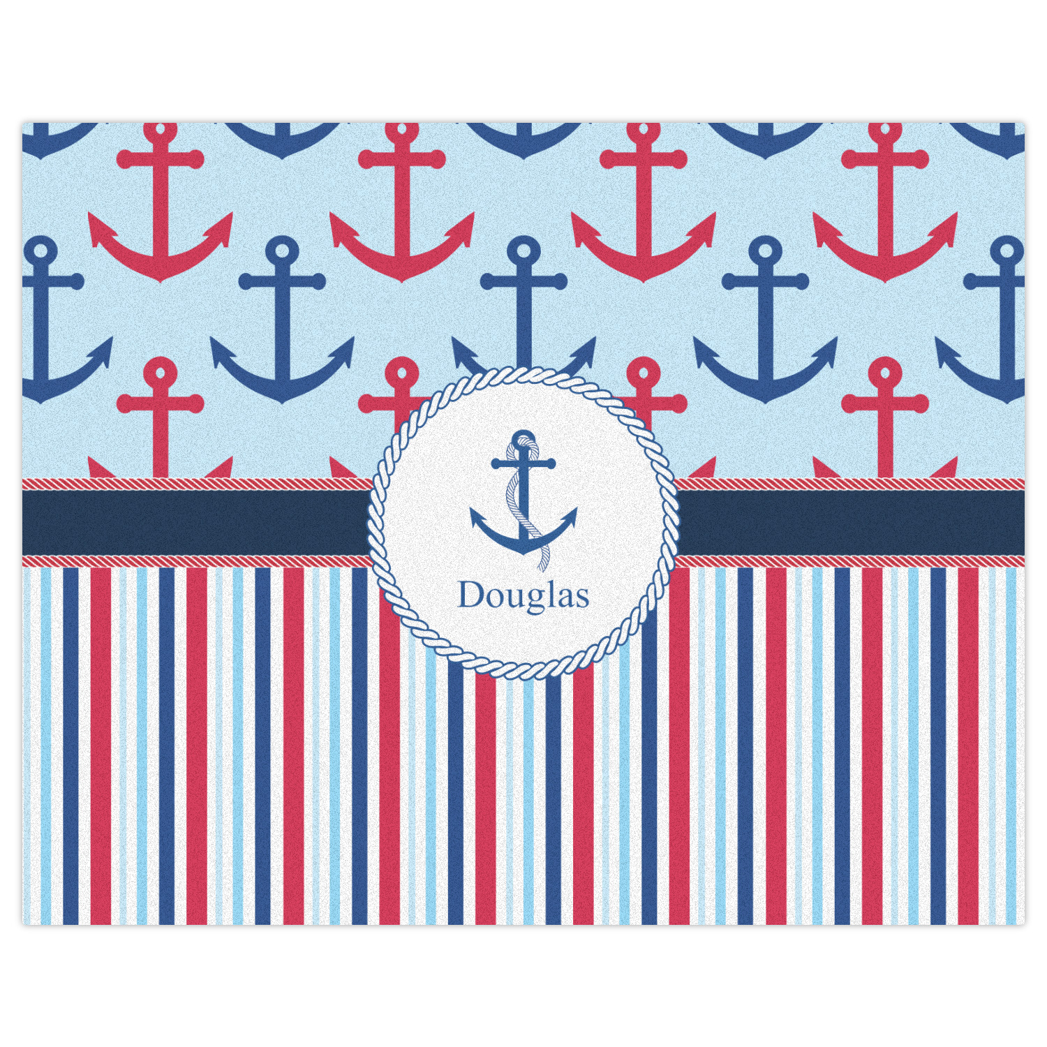 A porthole circle showcases an anchor and rope in the coordinating colors. Add your child's name for that personalized designer's touch.