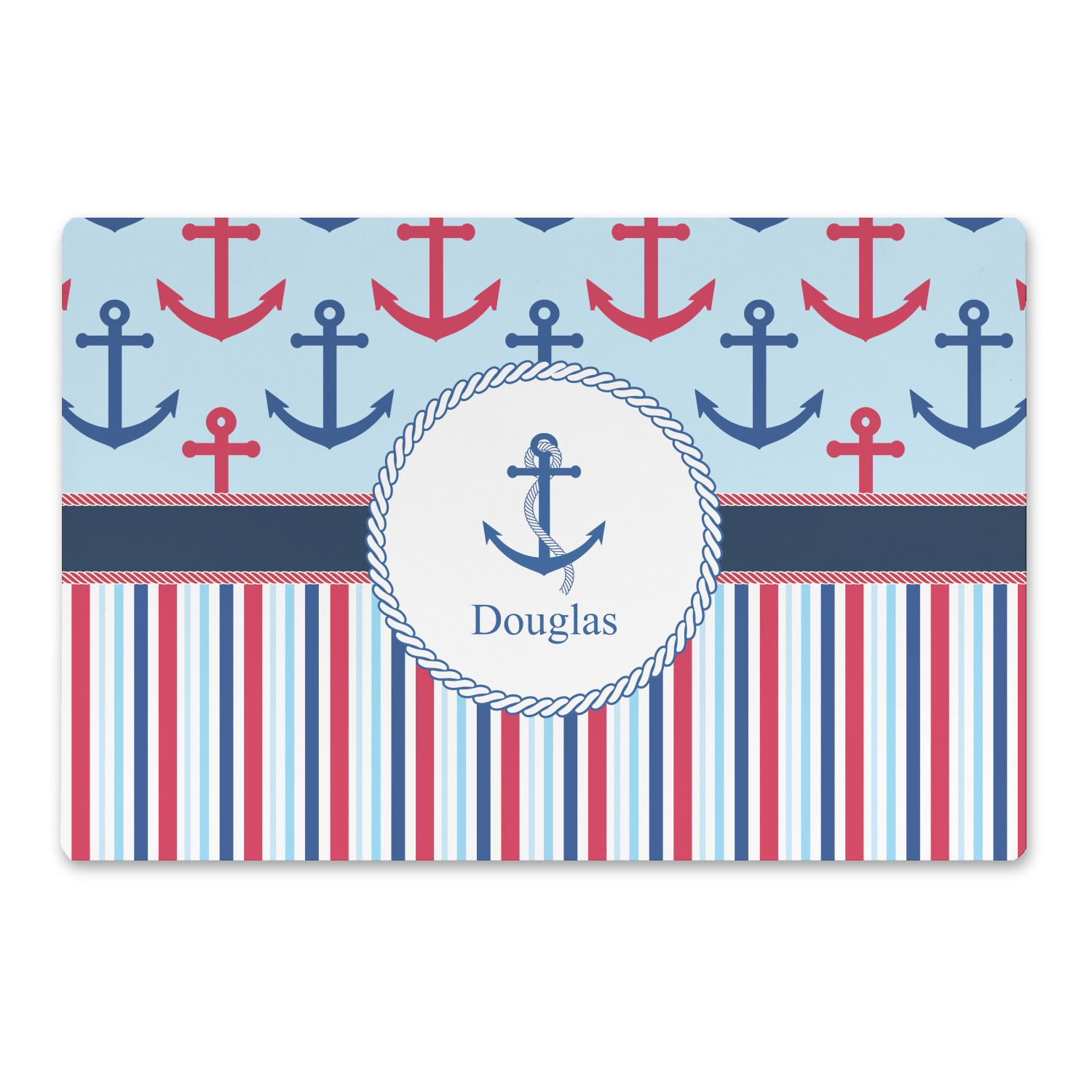 A porthole circle showcases an anchor and rope in the coordinating colors. Add your child's name for that personalized designer's touch.