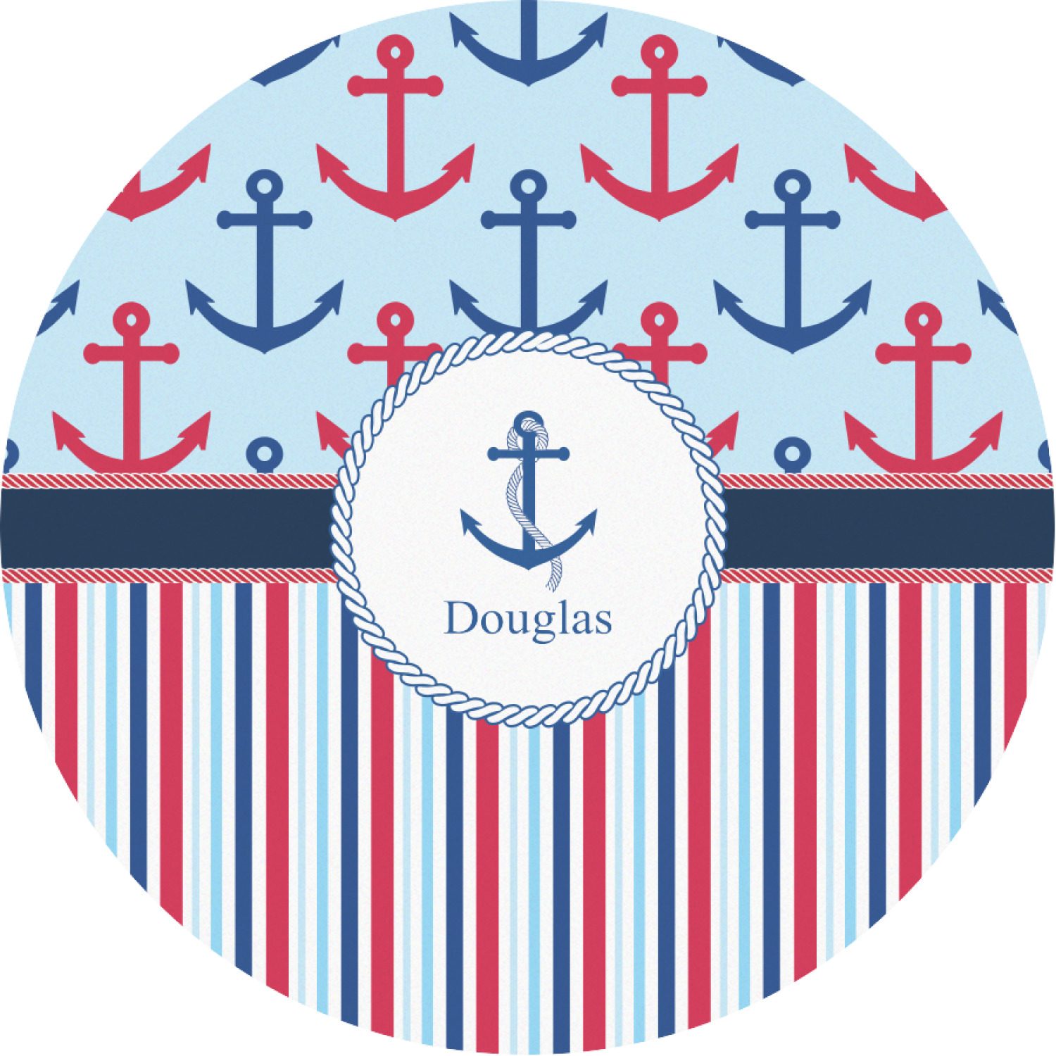 A porthole circle showcases an anchor and rope in the coordinating colors. Add your child's name for that personalized designer's touch.