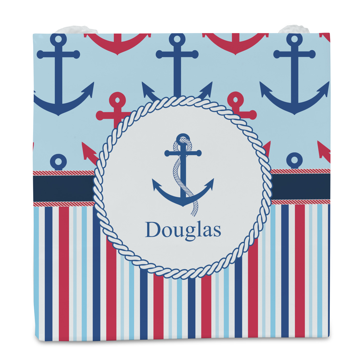 A porthole circle showcases an anchor and rope in the coordinating colors. Add your child's name for that personalized designer's touch.