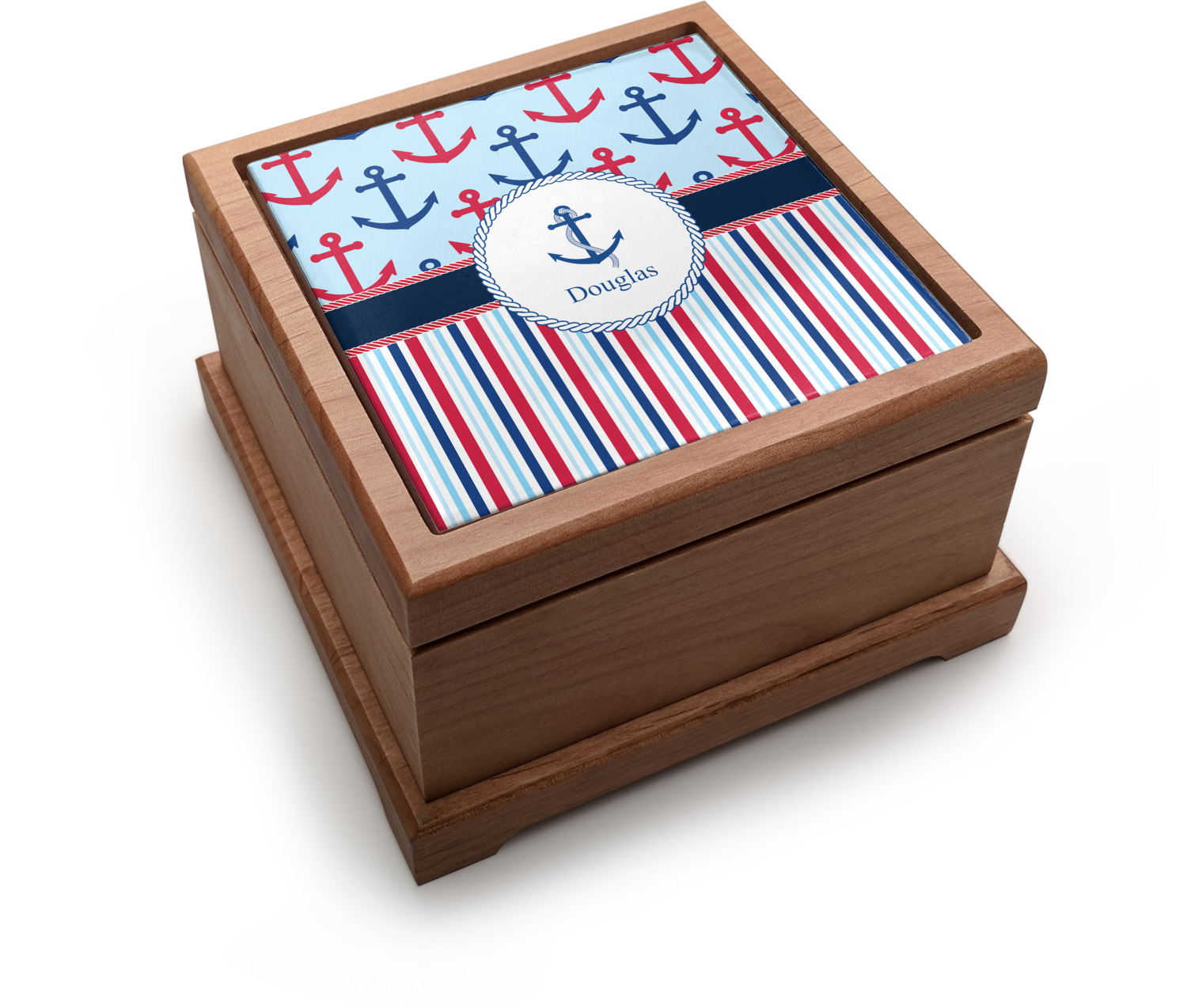 A porthole circle showcases an anchor and rope in the coordinating colors. Add your child's name for that personalized designer's touch.