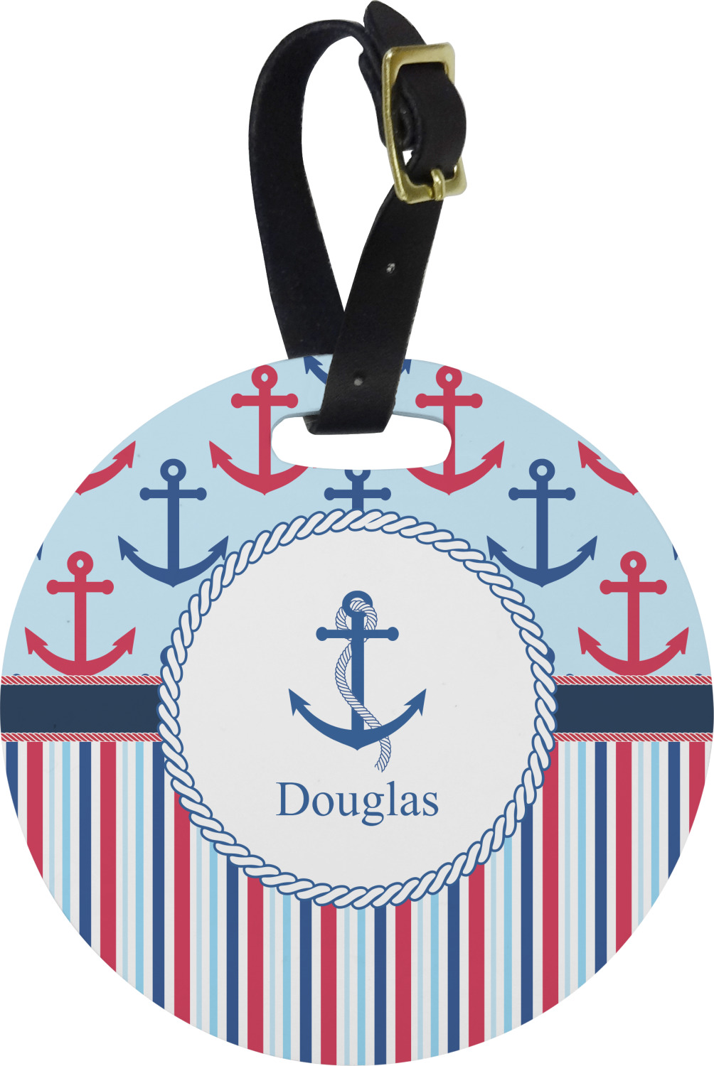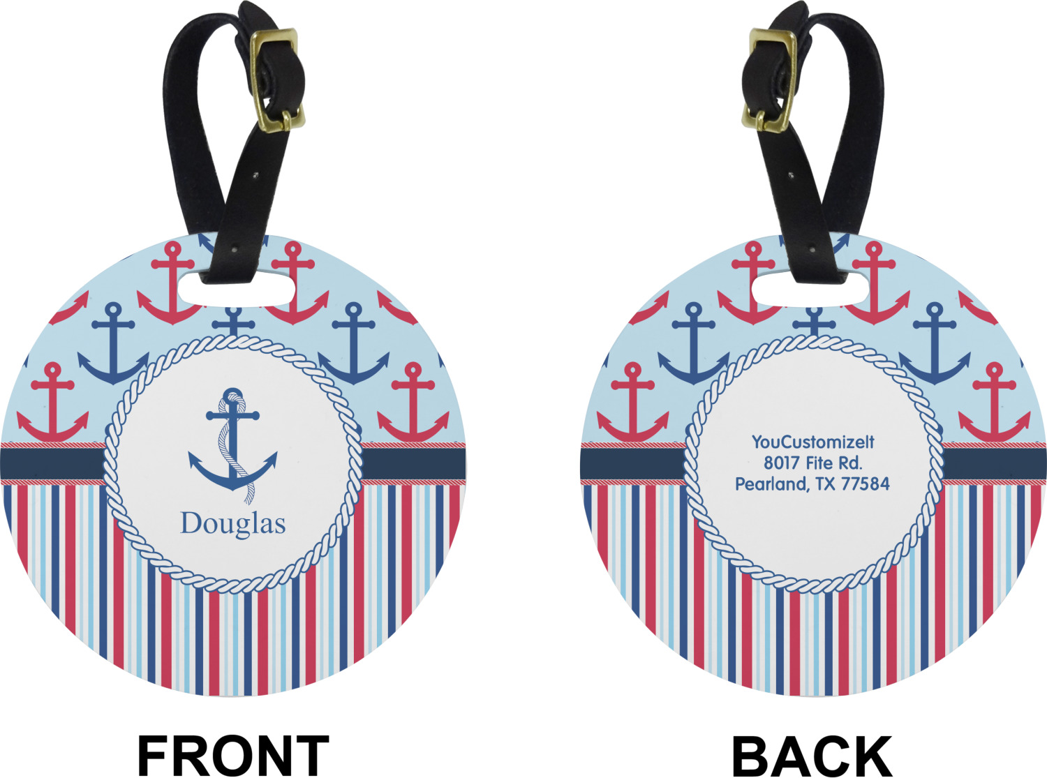 These cute luggage tags are made of a fiber-reinforced, UV-resistant plastic, making them waterproof and durable enough for both everyday use and the rugged adventures of any traveler! A leather strap with holes and a buckle is included with your purchase and can be used to attach your custom luggage tag to any suitcase, backpack, or duffel bag. You can design these travel tags as you wish; your customization will be displayed across the front, while the back will show as little or as much personal information as you want.