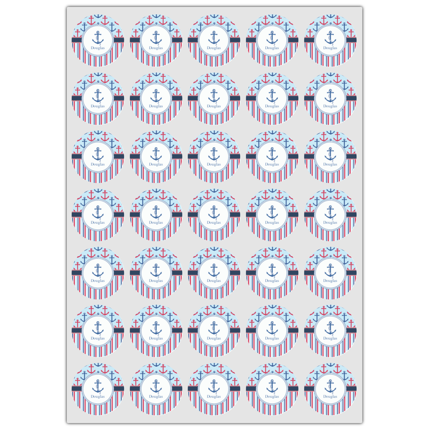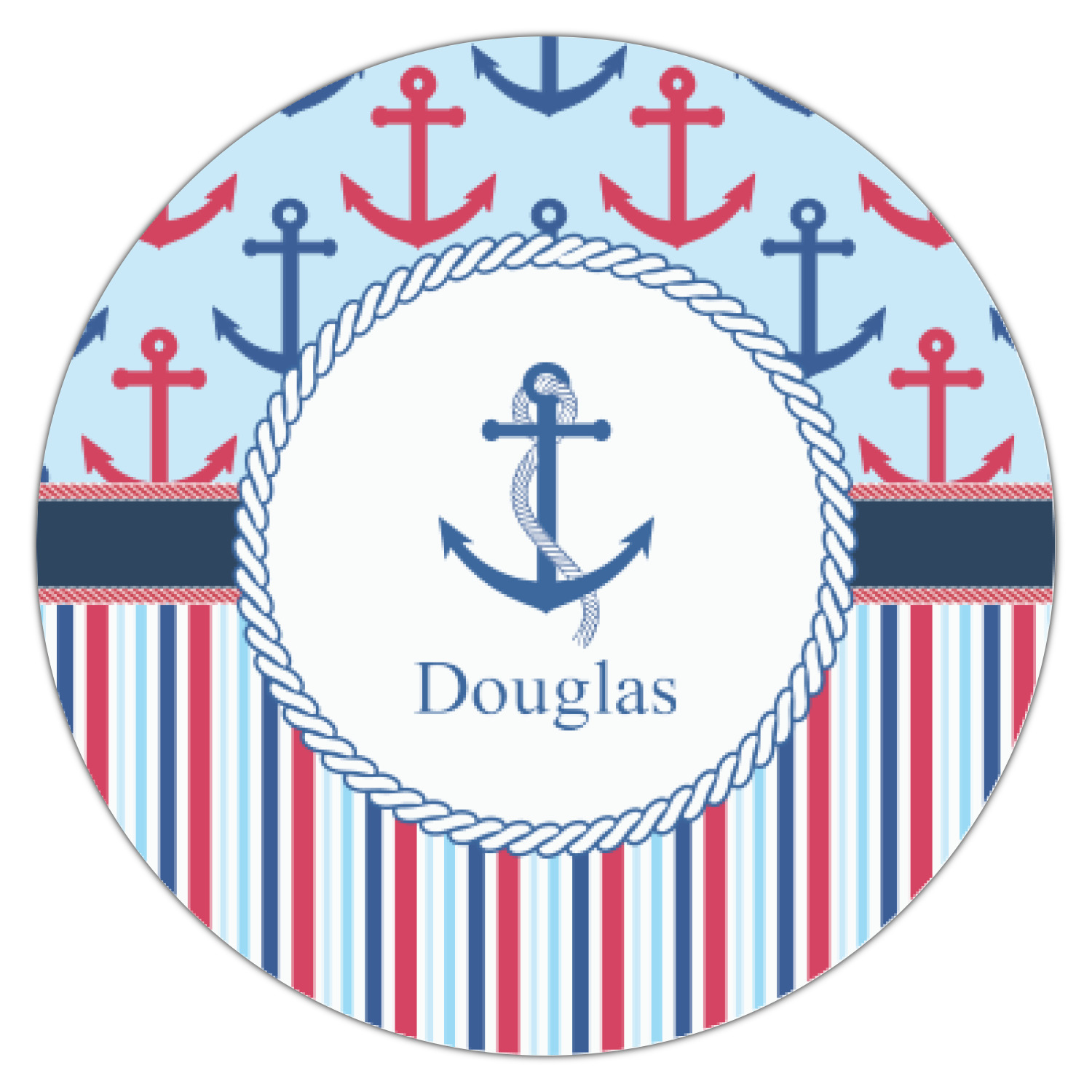 A porthole circle showcases an anchor and rope in the coordinating colors. Add your child's name for that personalized designer's touch.