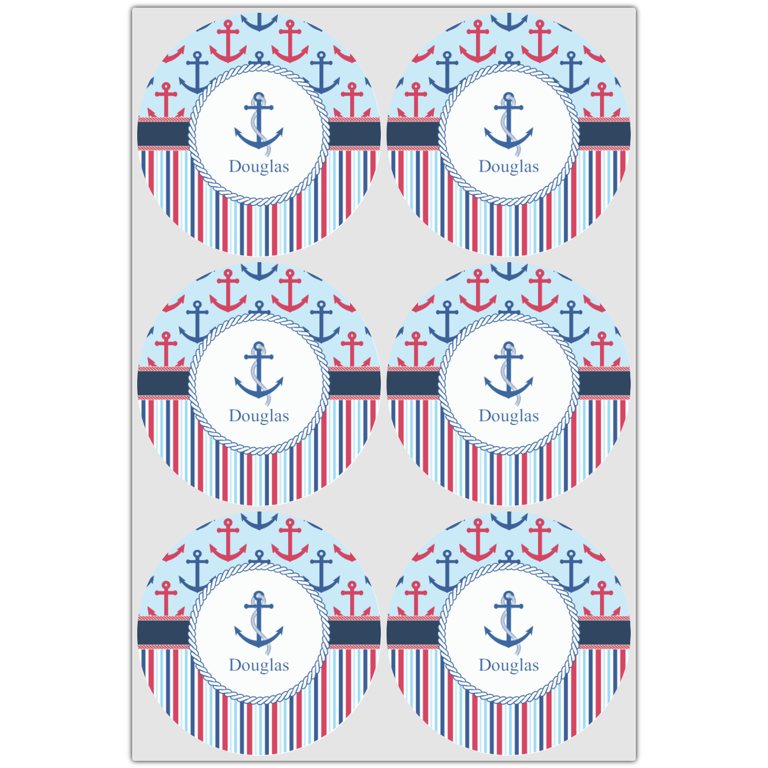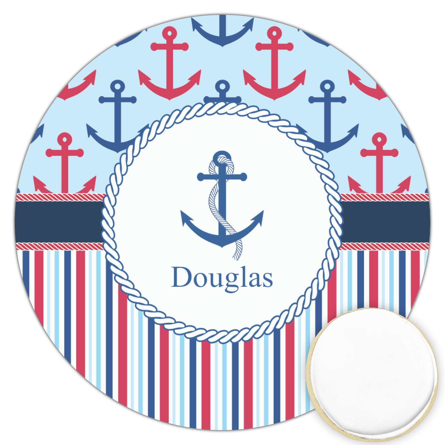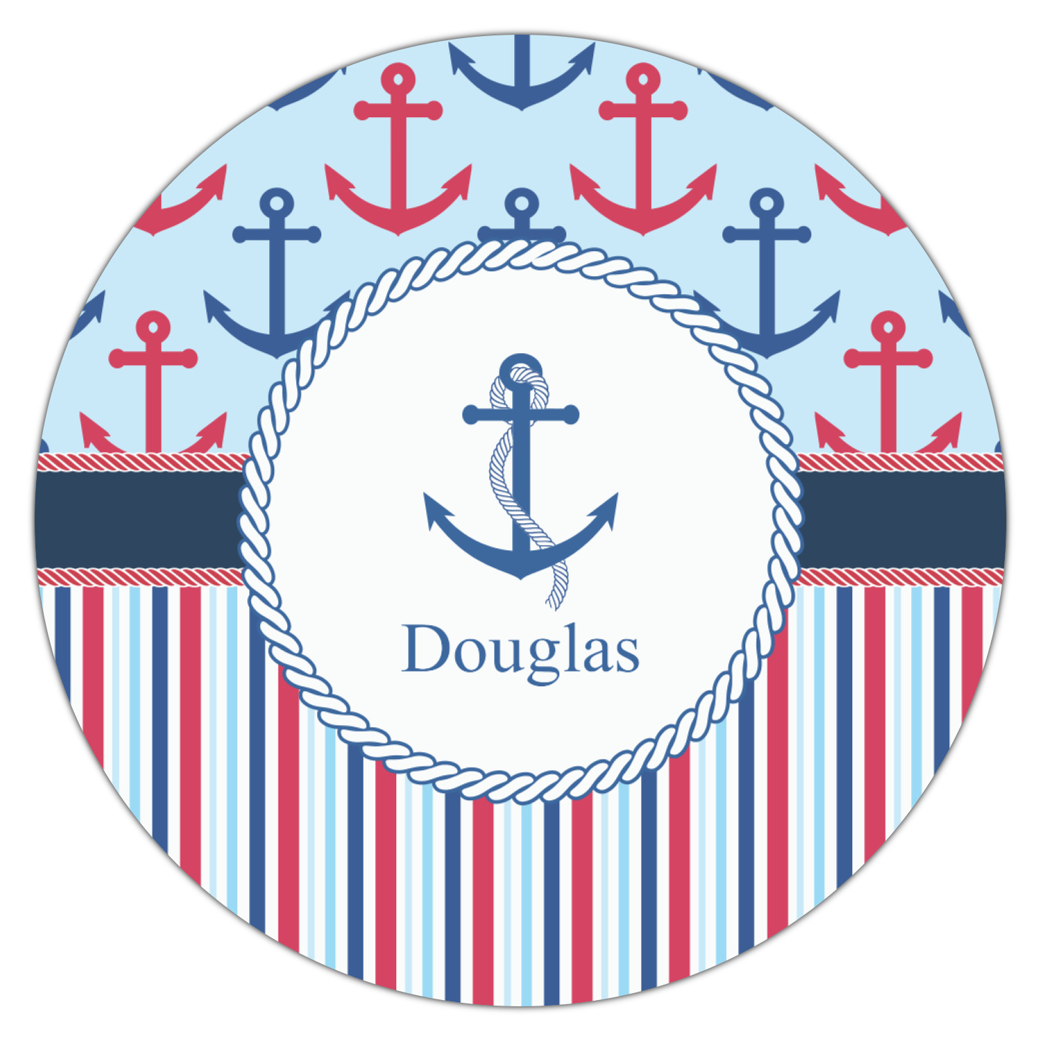 A porthole circle showcases an anchor and rope in the coordinating colors. Add your child's name for that personalized designer's touch.