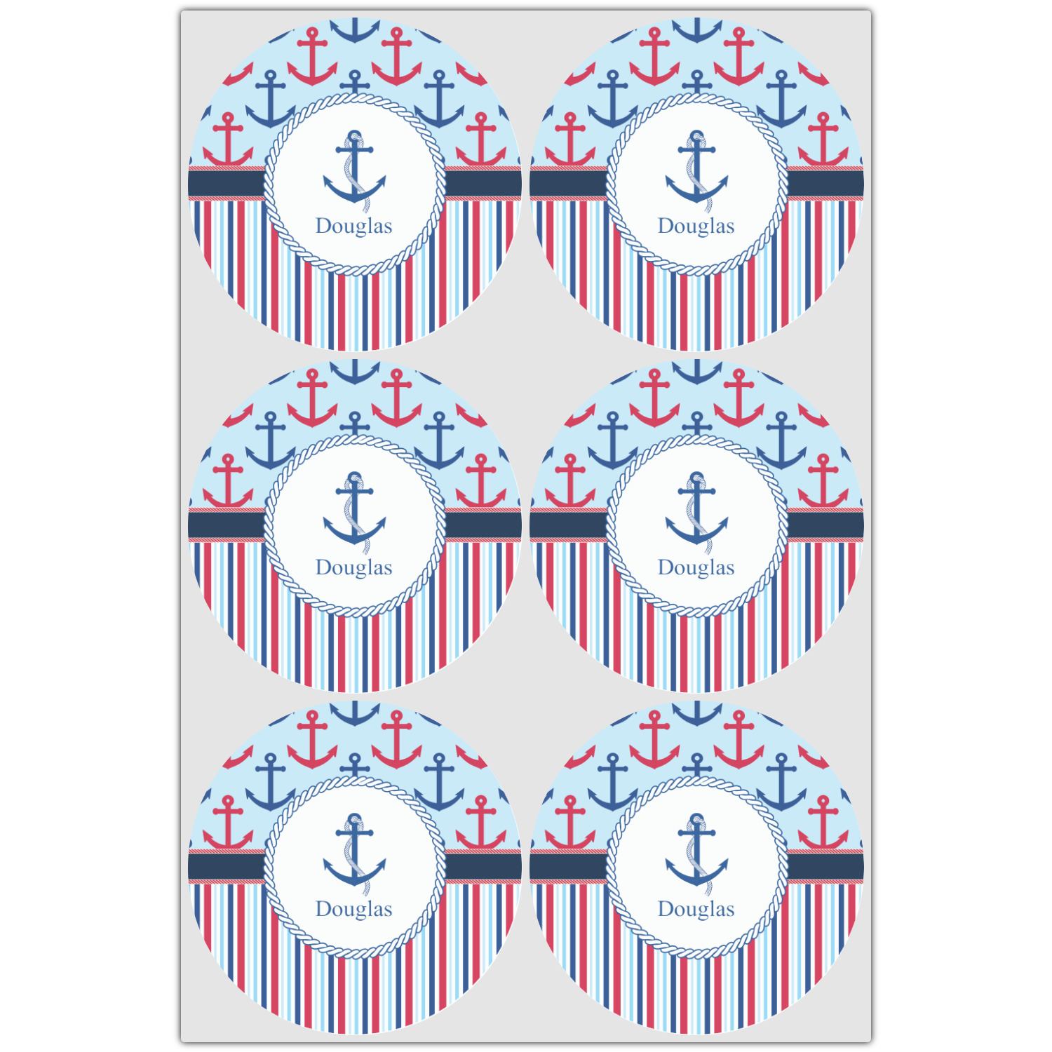 A porthole circle showcases an anchor and rope in the coordinating colors. Add your child's name for that personalized designer's touch.