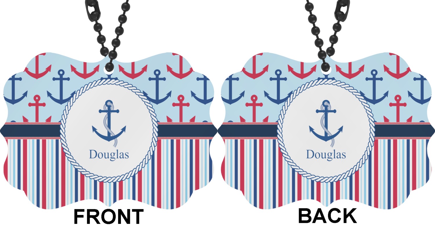 Crafted from a sturdy aluminum, these mirror ornaments proudly flaunt your personalized design(s) on both sides. A glossy finish is applied to your ornament, to accentuate the vibrancy of your design. A 10”, black, beaded chain accompanies your rear view mirror accessory, but can be adjusted to meet your desired length. We have this charm in two shapes; Benelux and Berlin. The Benelux measures at 4 by 2.5 inches, and is 0.045 inches thick. The Berlin measures at 4 by 2.75 inches and 0.045 inches deep.