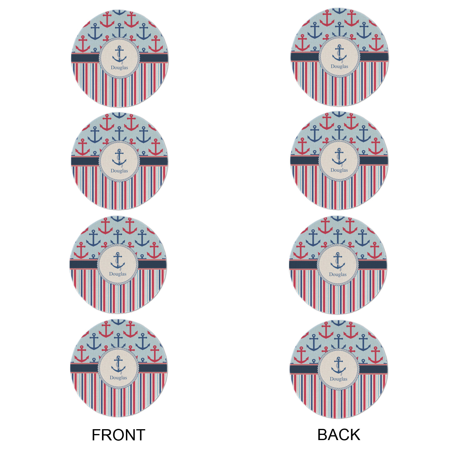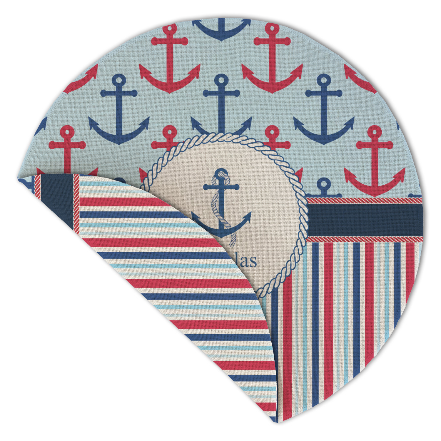 A porthole circle showcases an anchor and rope in the coordinating colors. Add your child's name for that personalized designer's touch.