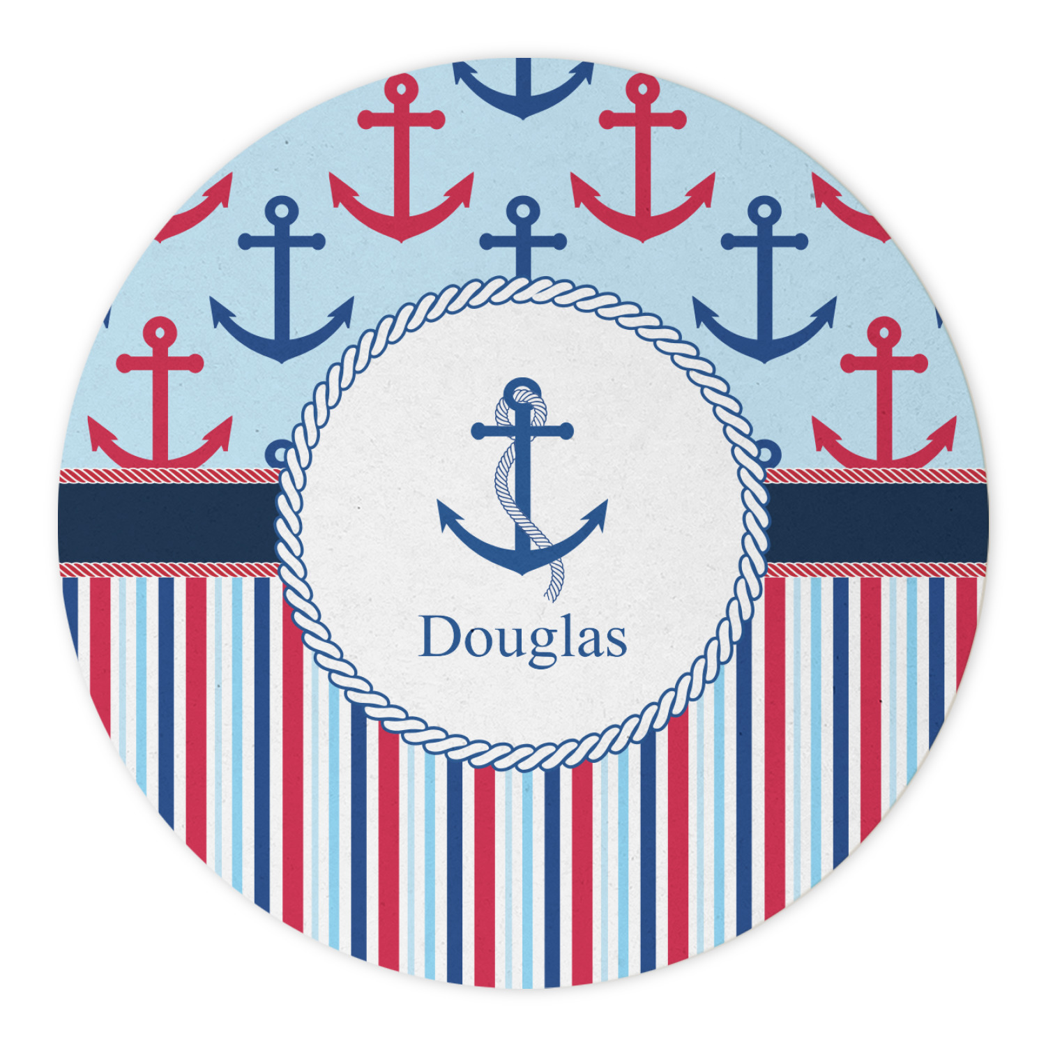 A porthole circle showcases an anchor and rope in the coordinating colors. Add your child's name for that personalized designer's touch.