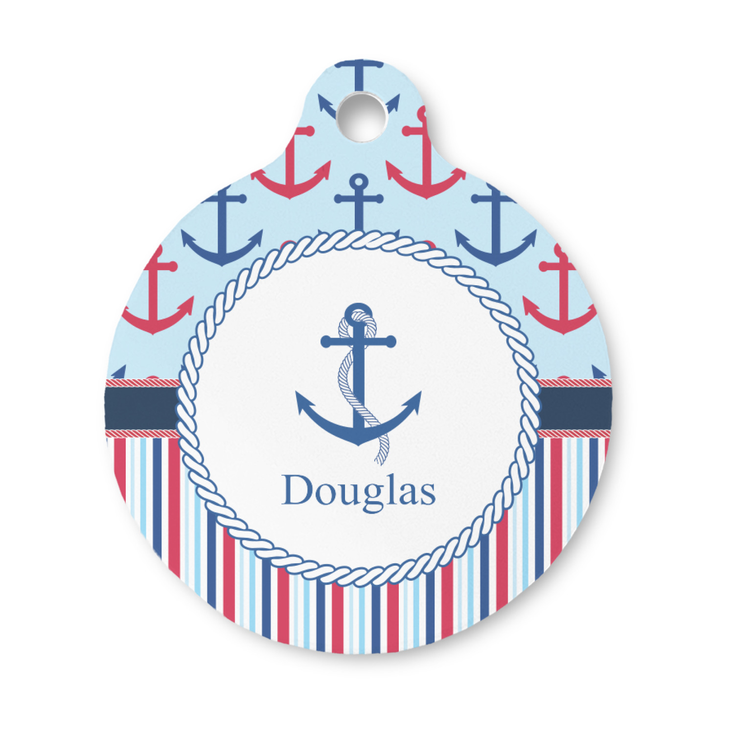 A porthole circle showcases an anchor and rope in the coordinating colors. Add your child's name for that personalized designer's touch.