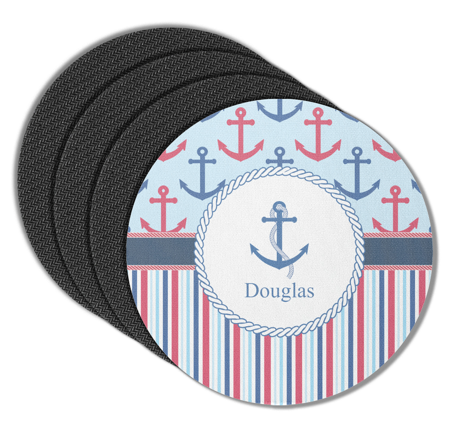These drink coasters have a smooth, polyester top and a textured, rubber backing on its bottom. The non-slip rubber backing underneath works to keep any spills at bay. At 4 by 4 by 0.25 inches thick, these custom coasters are a suitable size for most drinkware. Your personalization is displayed atop the face of the cup coaster. We sell these rubber coasters in two different shapes: square and round. You can buy each shape as singulars or as a set of 4.