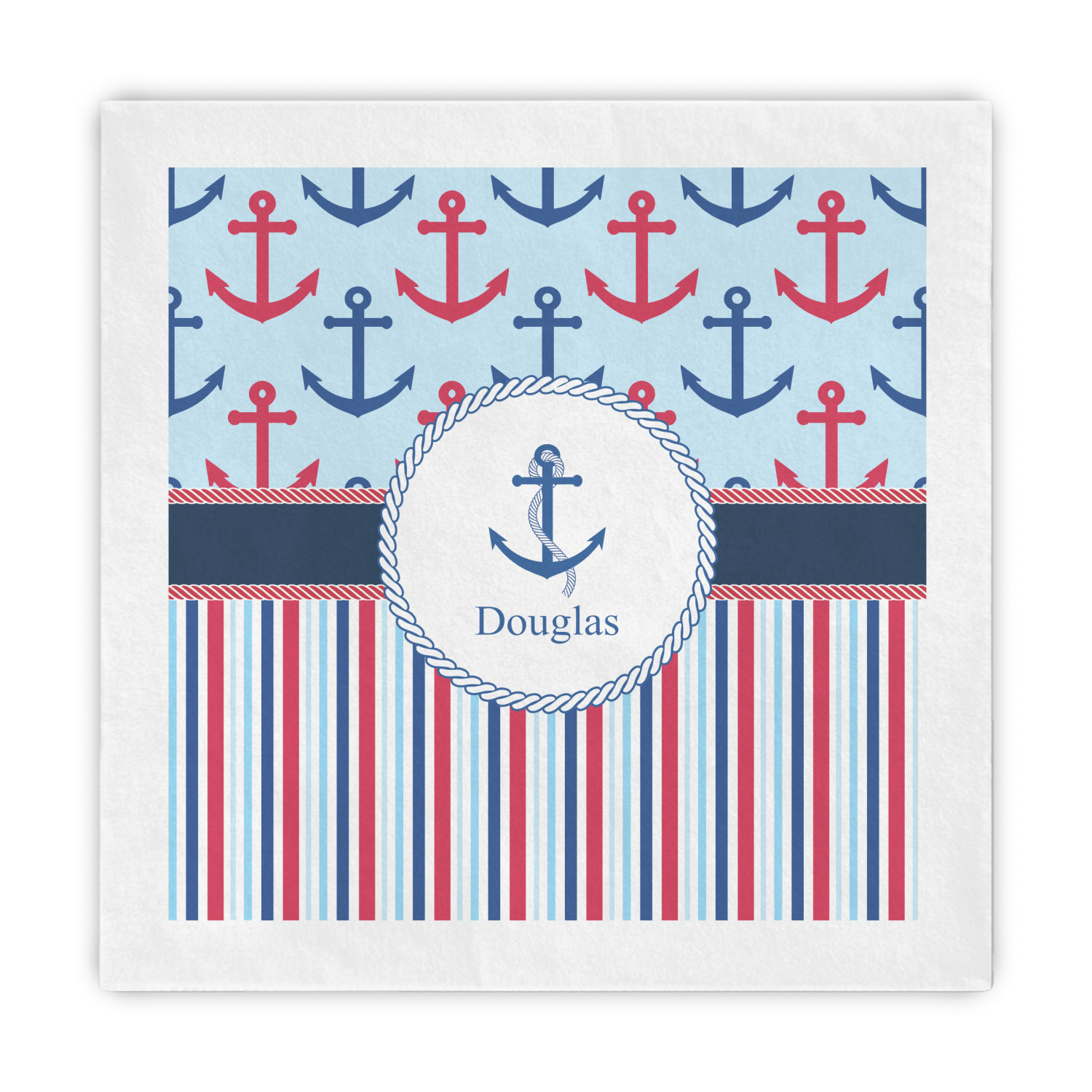 A porthole circle showcases an anchor and rope in the coordinating colors. Add your child's name for that personalized designer's touch.