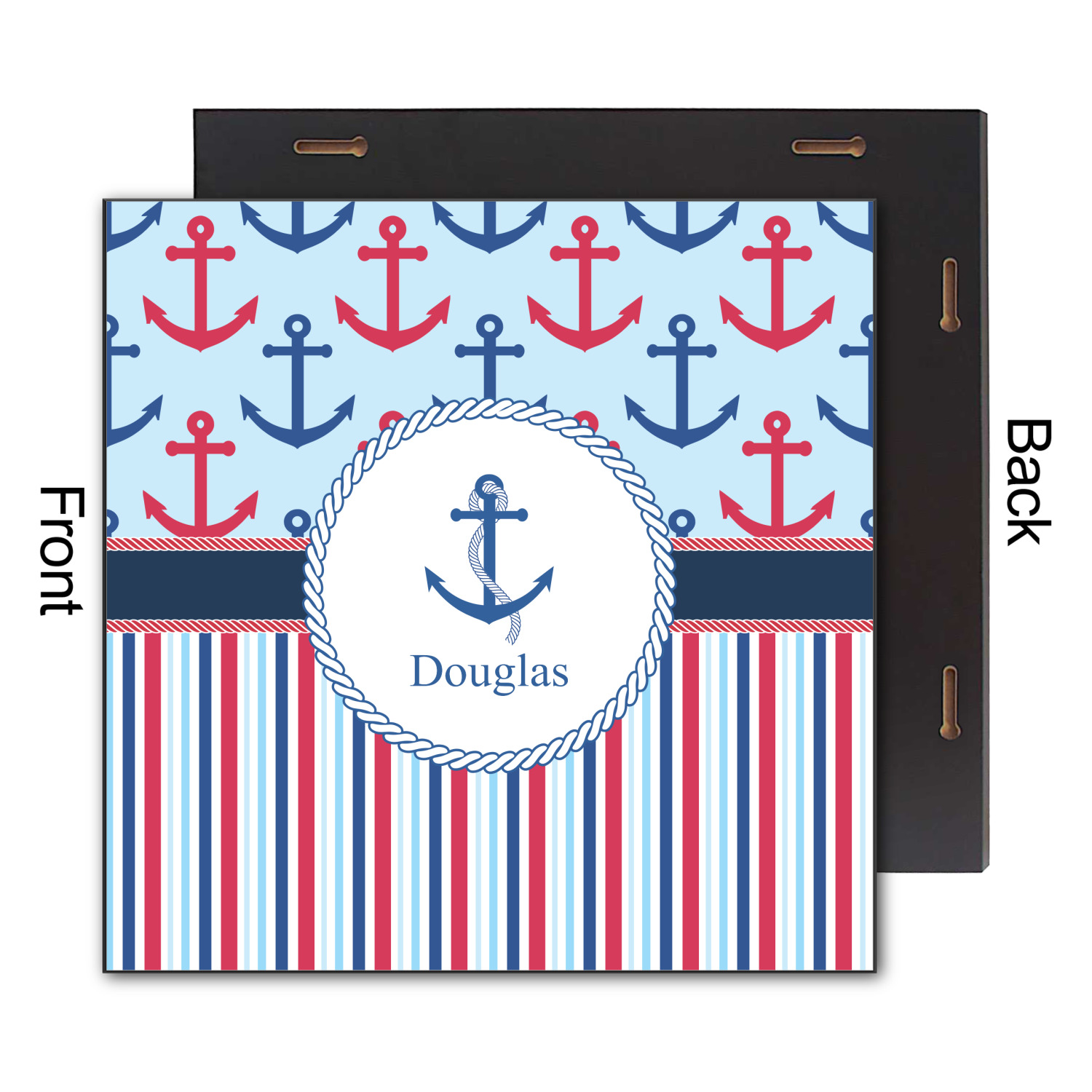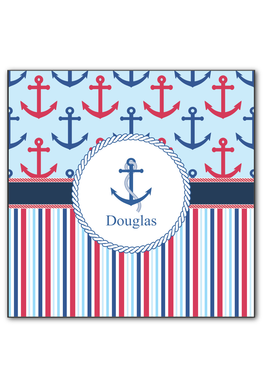 A porthole circle showcases an anchor and rope in the coordinating colors. Add your child's name for that personalized designer's touch.