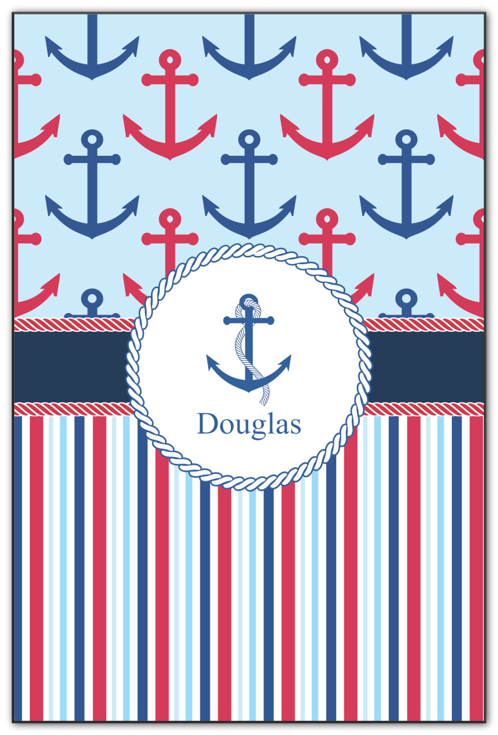 A porthole circle showcases an anchor and rope in the coordinating colors. Add your child's name for that personalized designer's touch.