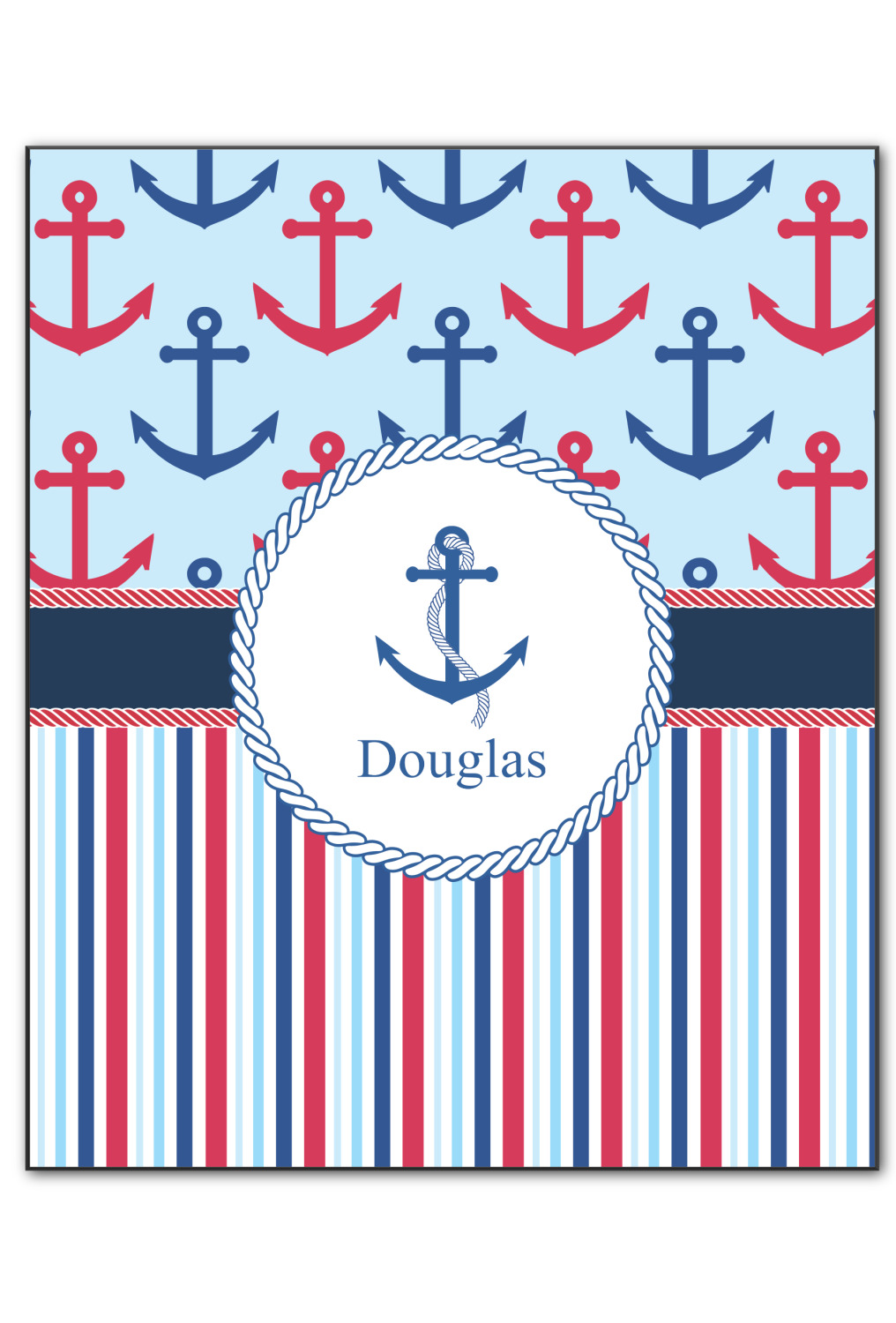 A porthole circle showcases an anchor and rope in the coordinating colors. Add your child's name for that personalized designer's touch.