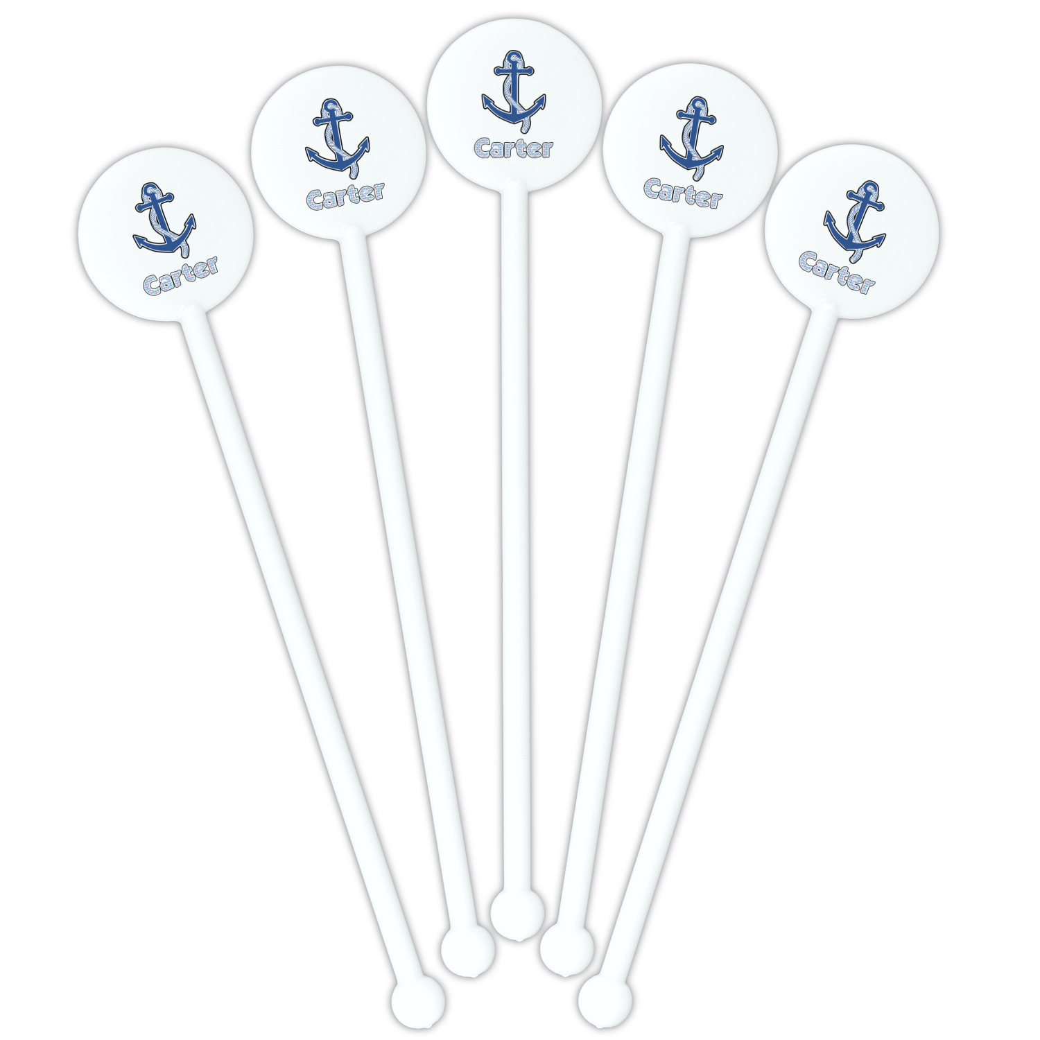 Coastal / Beach Style Designs for 5.5" Round Plastic Stir Sticks - White - Single-Sided