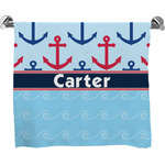 This fun nautical design features a versatile light blue background with red and blue anchors pattern on the top with coordinating light blue ocean waves on the bottom. A red stripe with a nautical darker blue rope top and bottom brings both patterns together to create a beautiful nautical design.
