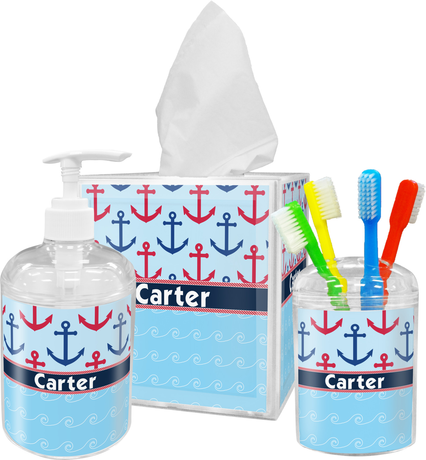 We also have coordinating bathroom accessories like personalized soap dispensers and personalized tissue box covers. Pair them together to create a bathroom accessory set!!